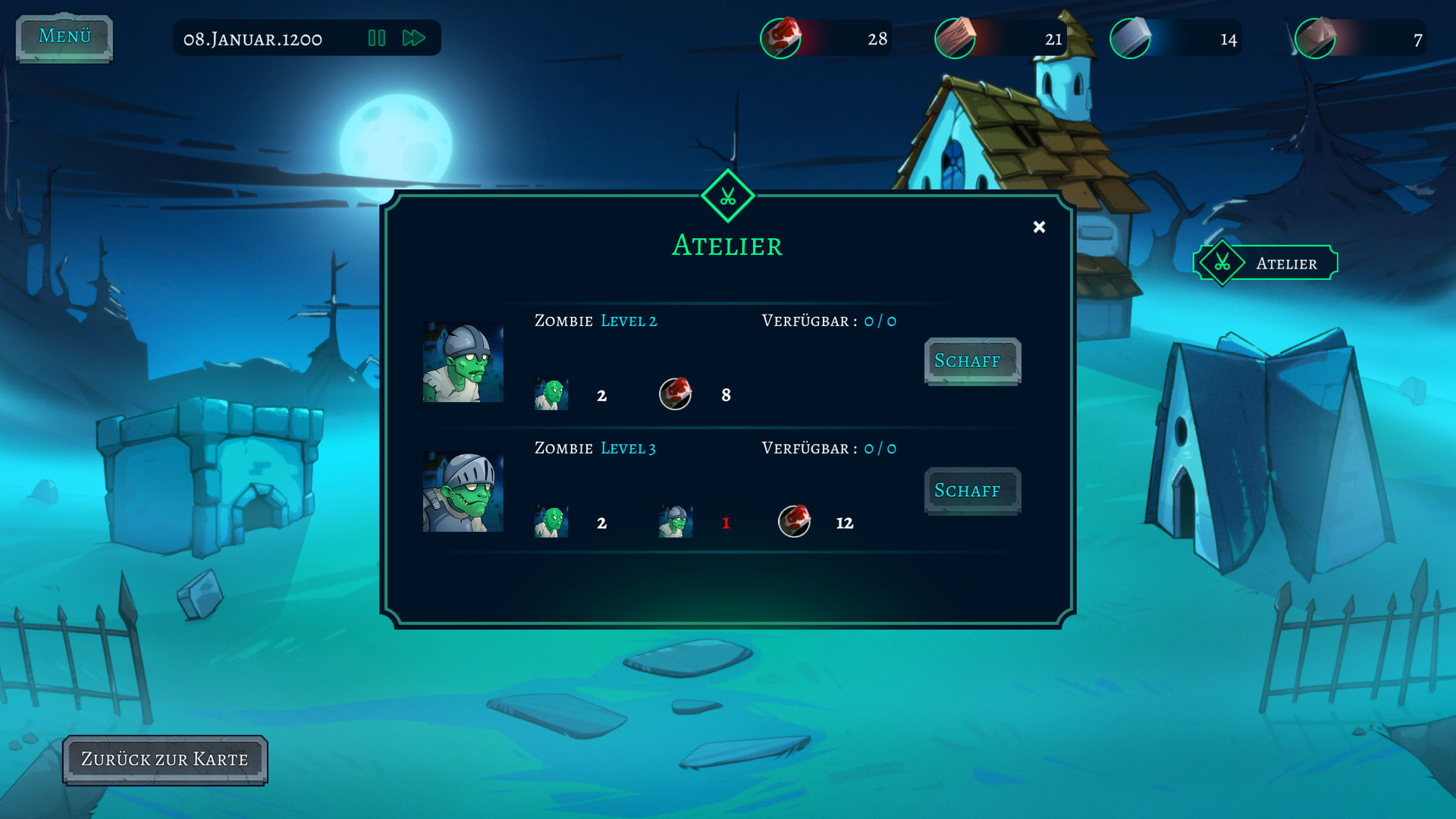 Sie müssen mit der Null beginnen: suchen Sie die Materialien und die Waffen, um die untoten Soldaten ausdauernder und schneller zu machen . Aber Erfolg Ihrer Armee bstimmt auch die richtige Auslese von Zombies. Jeder Typ verfügt nicht nur über Vorteile, sondern auch über Nachteile. Analysieren Sie die Kräfte des Feindes und durchdenken Sie den Bestand der Armee, bevor den Einfall zu begehen!