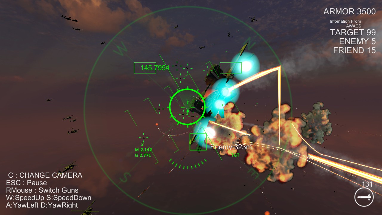 Level 8(Extra): Get on the helicopter and destroy all the ground vehicles. However, lock on can not be used.