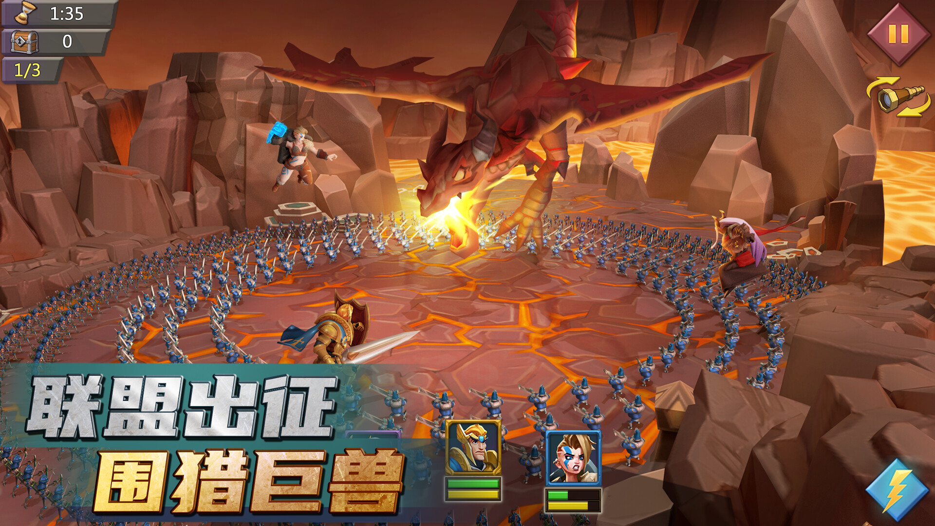 四大兵种、六大阵型灵活百搭,彼此相生相克、转守为攻,战场瞬息万变!如能做到知己知彼,策略明确,正确的阵型完美配合英雄的高级军团技能,必能以弱胜强,百战不殆!