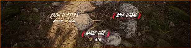Another part of the gameplay is survival. You try to not starve or die from thirst. You loot wood pieces to light a fire, you boil your water, you scavenge abandoned sheds for food or eat local flora.