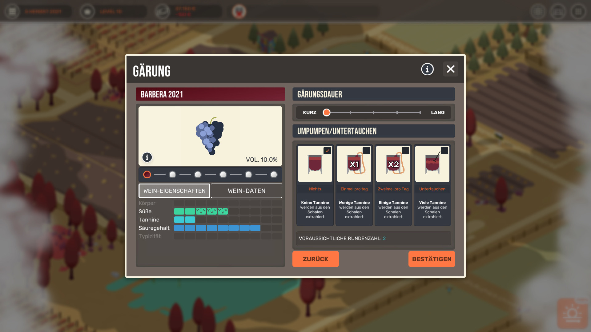 Wie im wirklichen Leben, kann jede Wahl, die Sie sowohl im Weinberg als auch im Verkauf treffen, die Qualität und Quantität des Weins beeinflussen, den Sie produzieren. Ein hochwertiger Wein wird den Ruf Ihres Unternehmens auf der ganzen Welt verbessern, so dass er zu einem höheren Preis verkauft wird und Sie schneller wachsen können.