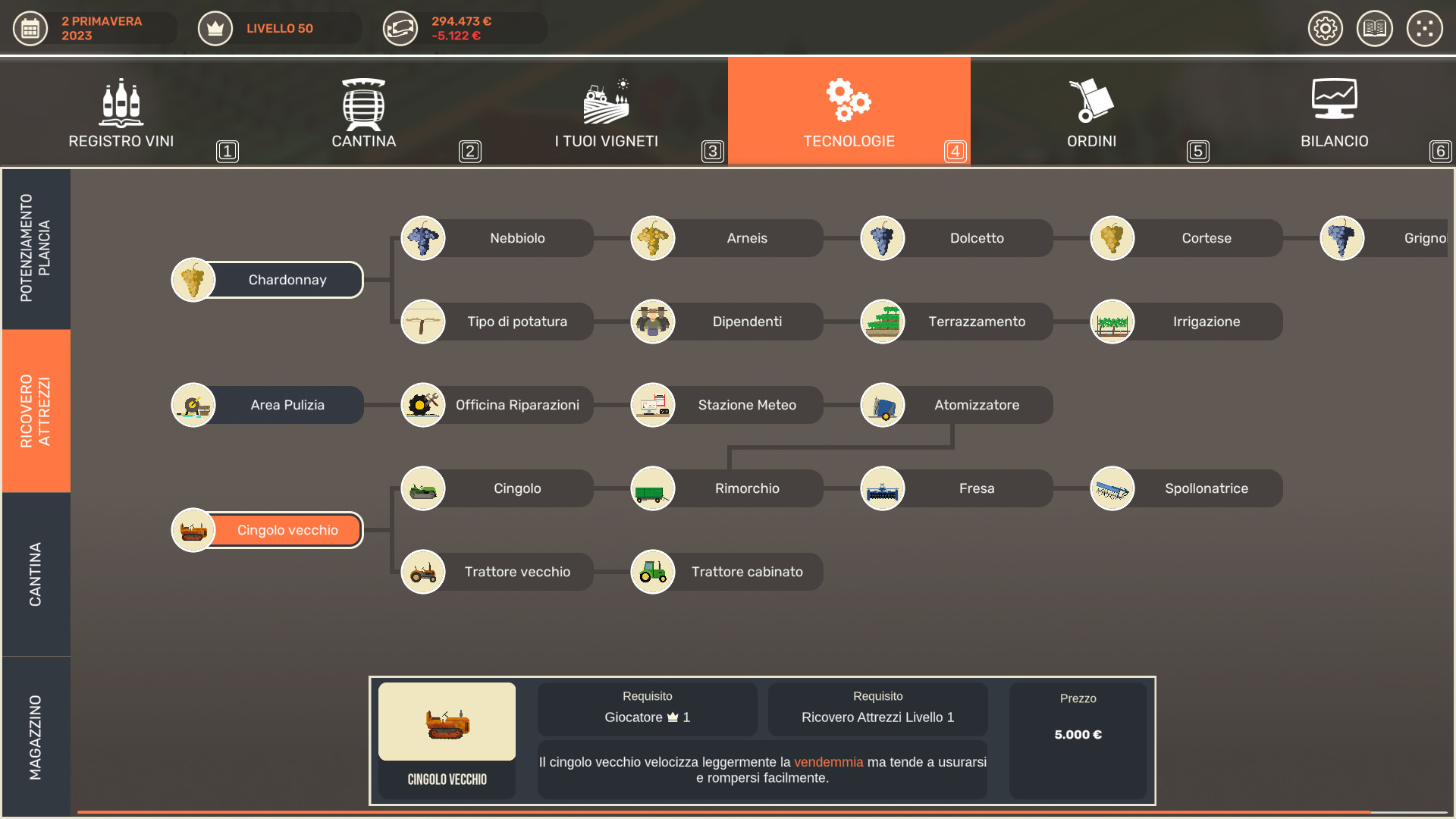 Come nella realtà ogni scelta compiuta, dal vigneto alla vendita, sarà in grado di influenzare il vino prodotto sia a livello quantitativo che qualitativo. Un vino di qualità aumenterà la fama della tua azienda a livello mondiale, potrà essere venuto ad un prezzo maggiore e ti permetterà di crescere meglio e più velocemente.