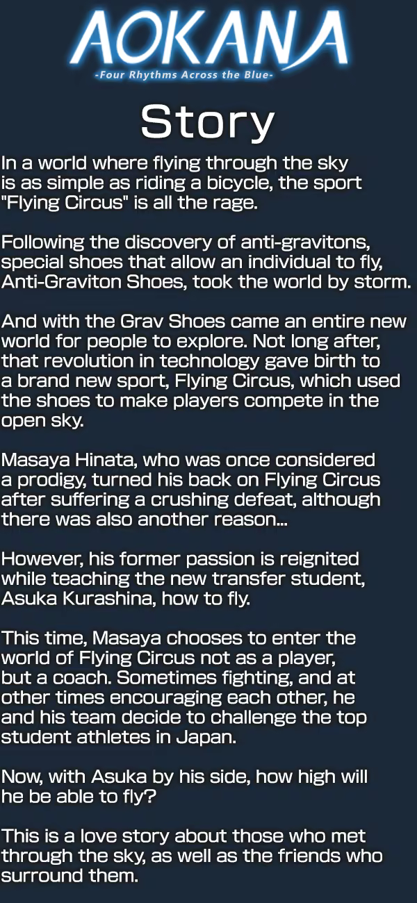 In a world where flying through the sky is as simple as riding a bicycle, the sport "Flying Circus" is all the rage. Following the discovery of anti-gravitons, special shoes that allow an individual to fly, Anti-Graviton Shoes, took the world by storm.