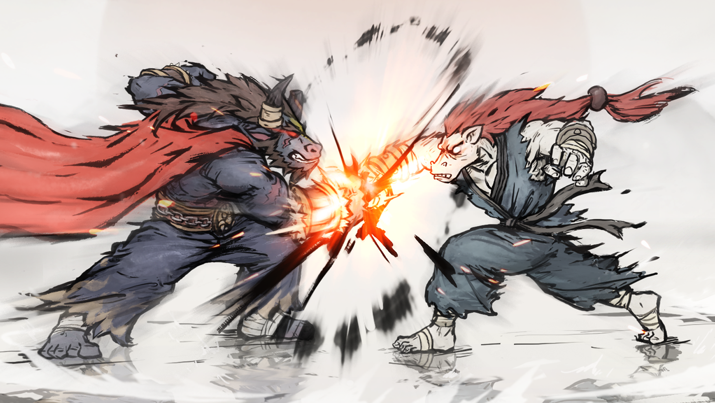 -Traditional ink wash painting style, "Journey to the West" character background.
