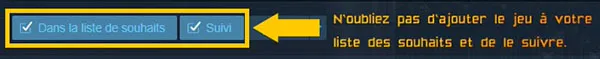 Ajoutez dès à présent le jeu à votre liste des souhaits, suivez le, rejoignez-nous dans les discussions et consultez régulièrement les mises à jours.