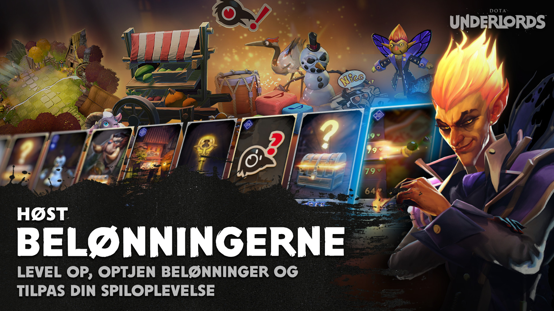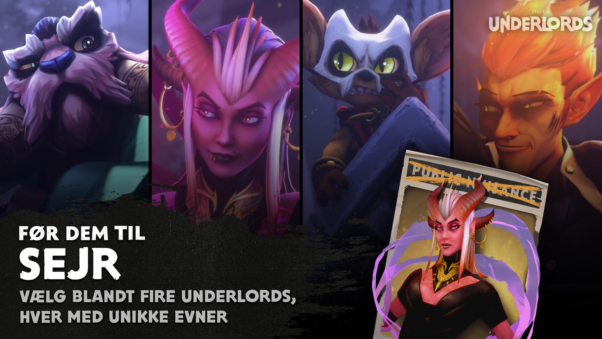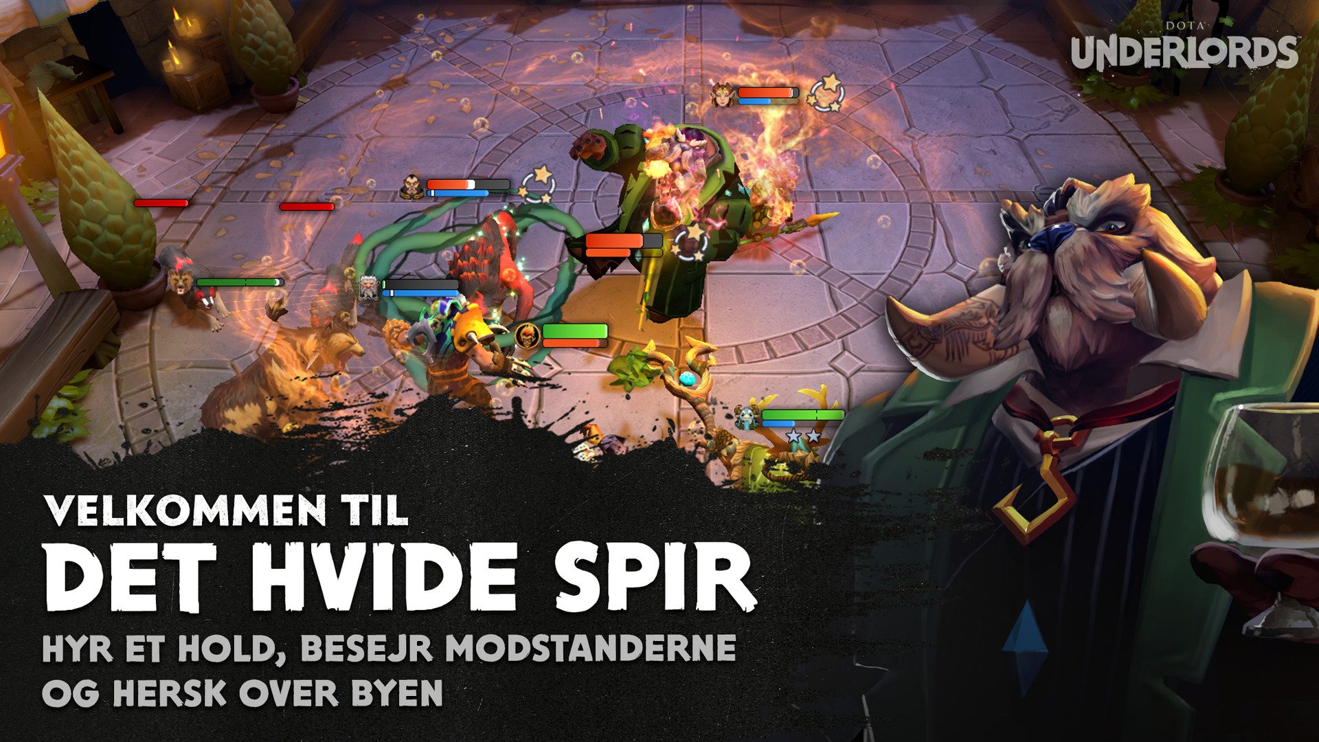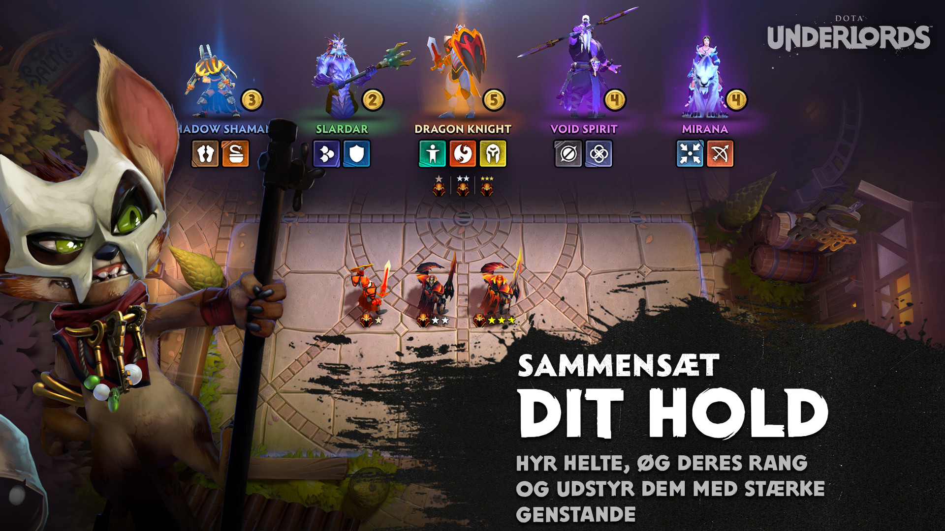 UNDERLORDS: Vælg mellem fire Underlords, der skal føre dit hold til sejr. Underlords er stærke enheder, som kæmper side om side med dit hold på brættet, og de har hver deres spillespil, fordele og evner.