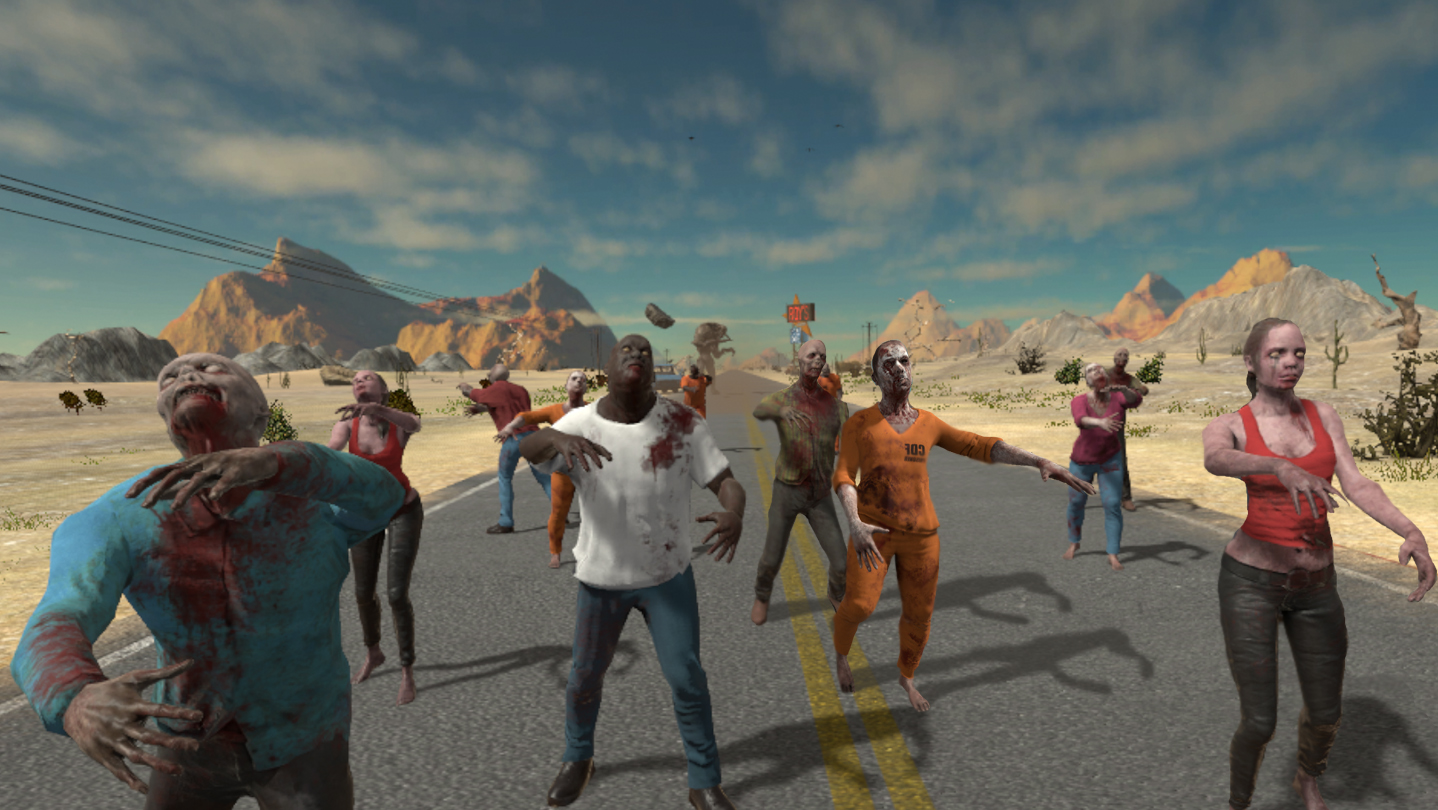 This is a first-person game developed especially for virtual reality. Realistic cars, weapons, and a variety of enemies are waiting for you ahead. You will start your long and dangerous adventure from the cozy shed where is your first car is, warm pizza on the table, and beneath you is your cute four-footed friend. Unfortunately, your little companion is severely wounded, and he can be saved only on a military base which is a hundred miles away on a path full of disgusting creatures. Start a race with death itself, kill as many enemies and gain coins. It will open new vehicles and guns. During the events of the game, you will return to your garage to buy new guns and upgrade your car.
