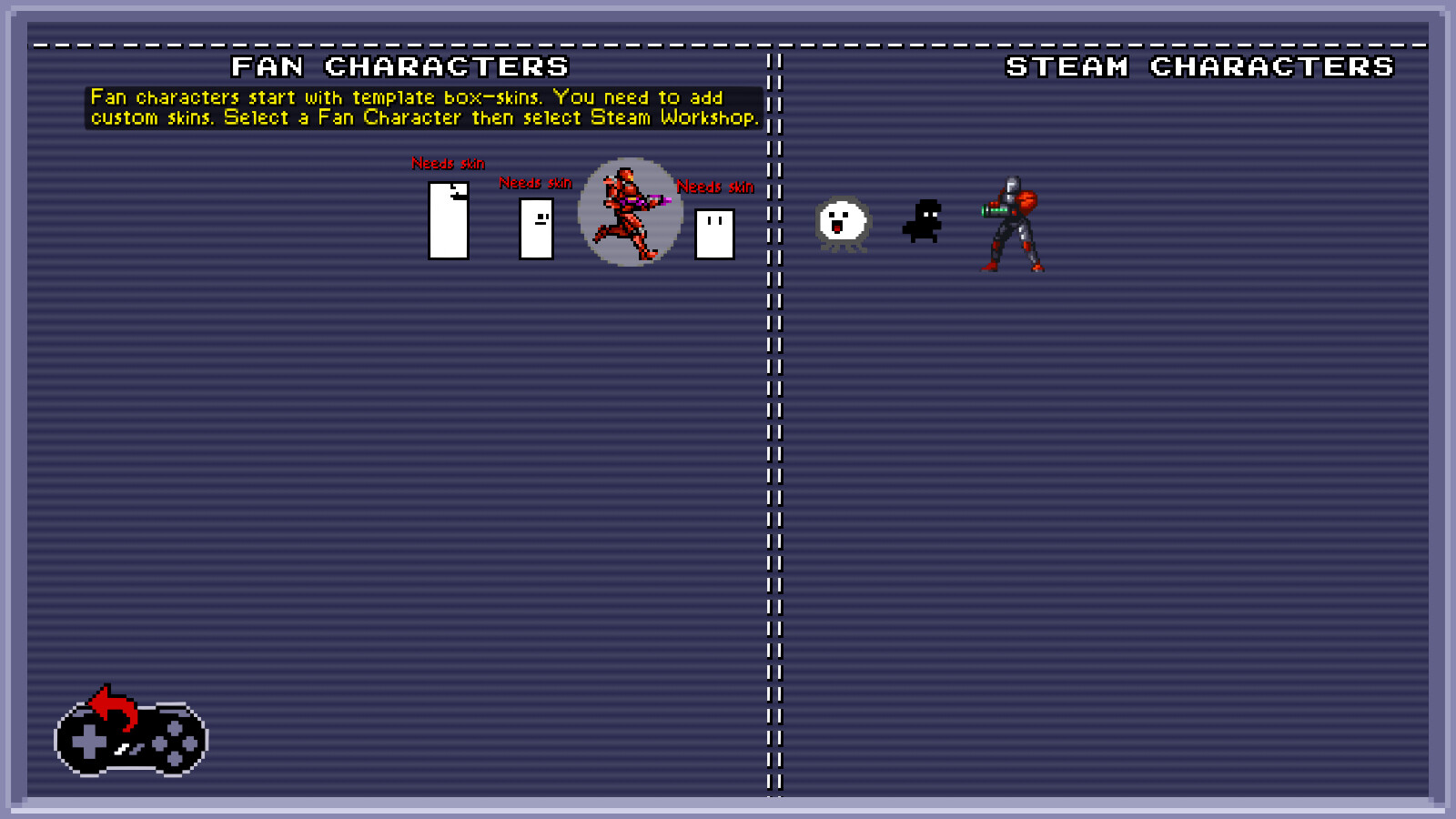 Accurately recreated indie characters. Retro fan characters. In-game Steam Workshop browser. In-game editors to create characters, campaigns, & arenas with your own art & sound. Multiple genres (platformer, exploration, fighting, run-n-gun). Co-op adventure mode & battle mode. Yowza!