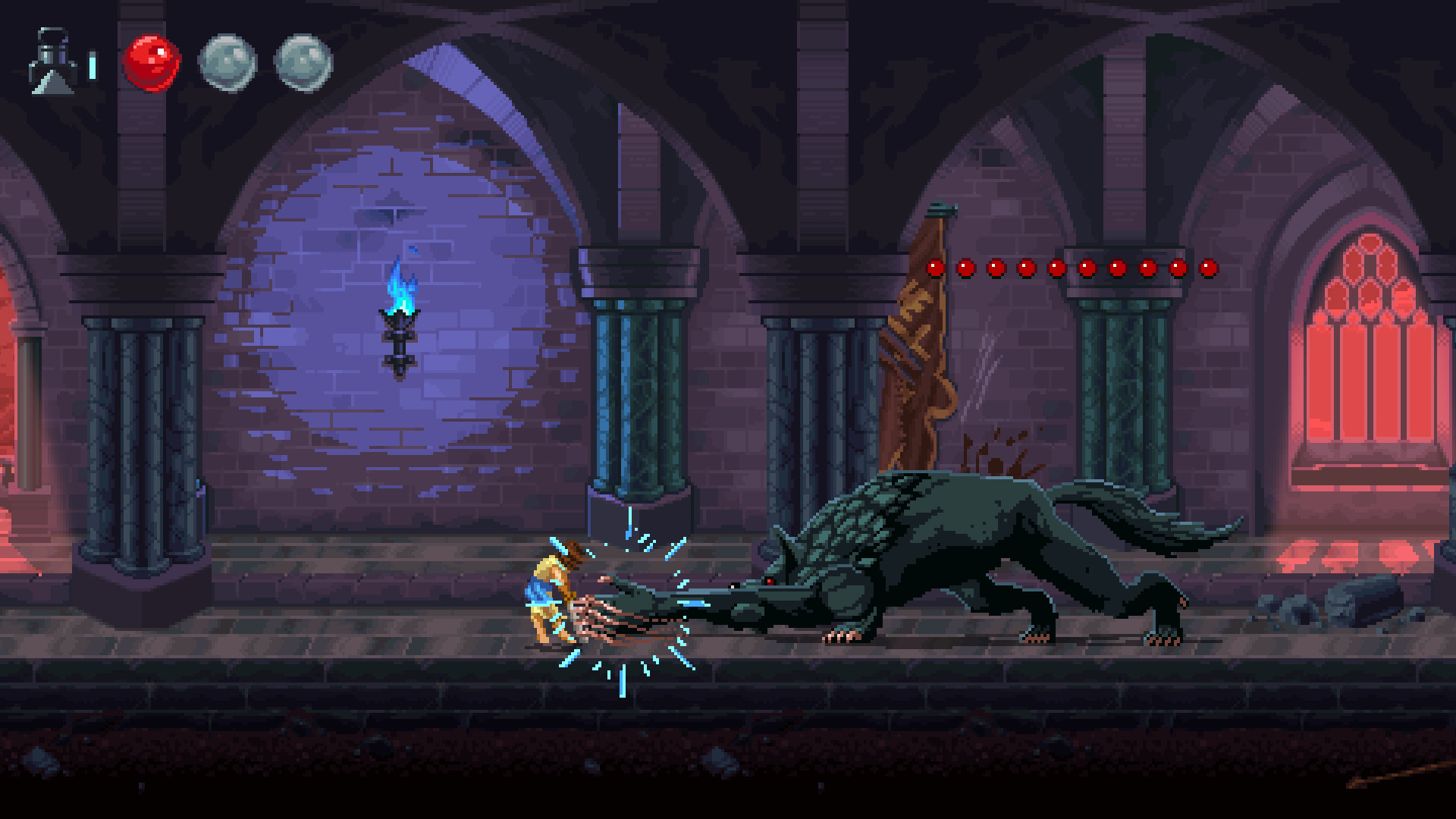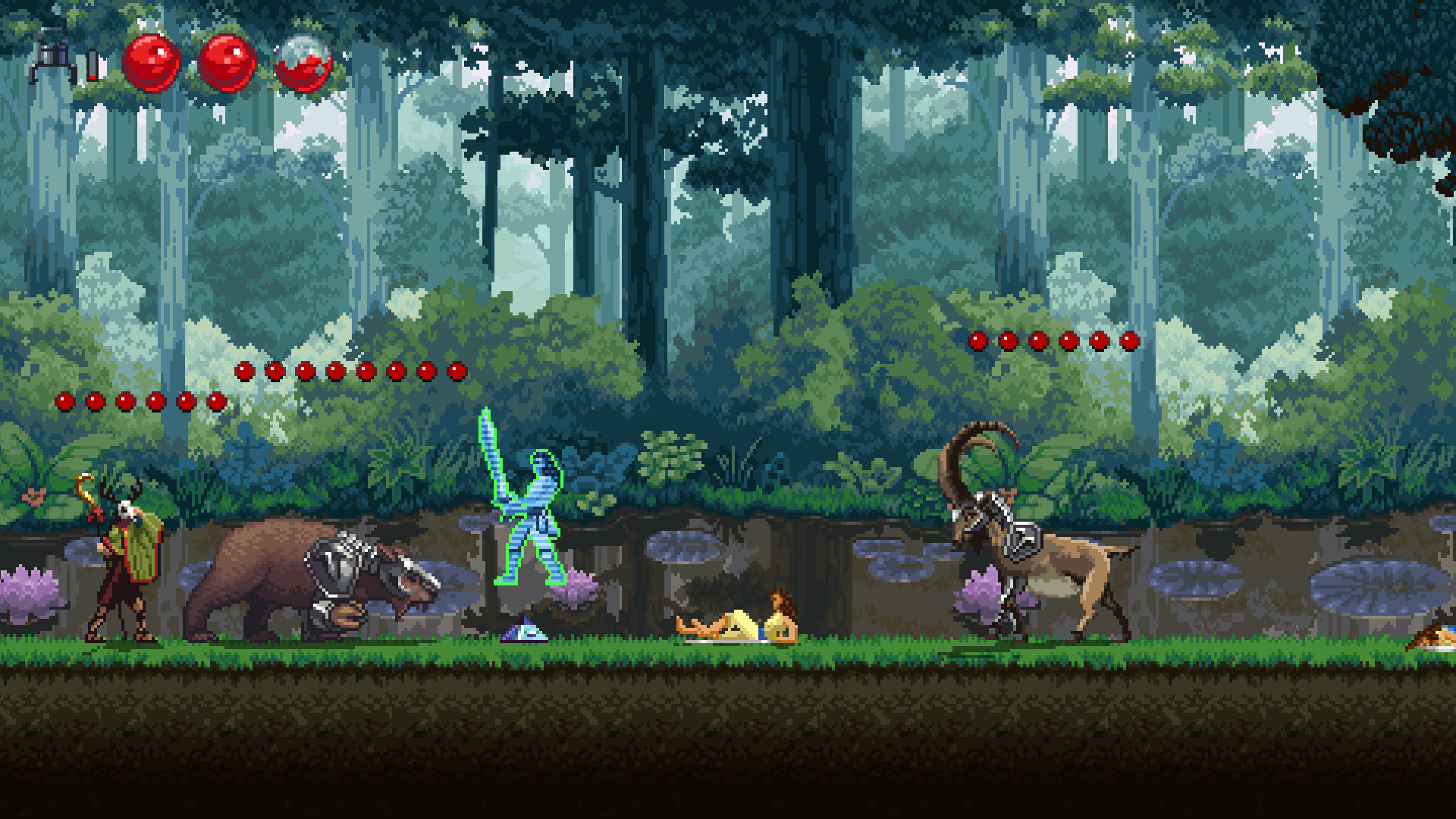 Beautiful 16 bit retro art style with fluid animations and deliberate combat. Read the enemy and act accordingly in this seamless world without any load screens.