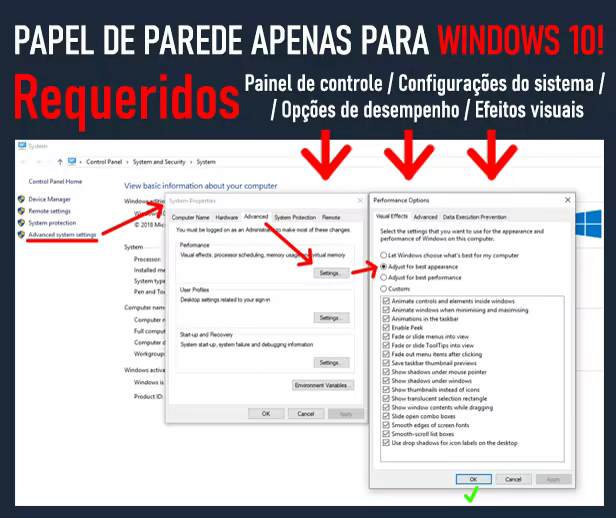 Muitas configurações permitem que você crie seu próprio papel de parede exclusivo. Três categorias contêm predefinições prontas que podem ser modificadas. Muitas opções permitem que você ajuste o papel de parede ao seu gosto e conjunto de PC.