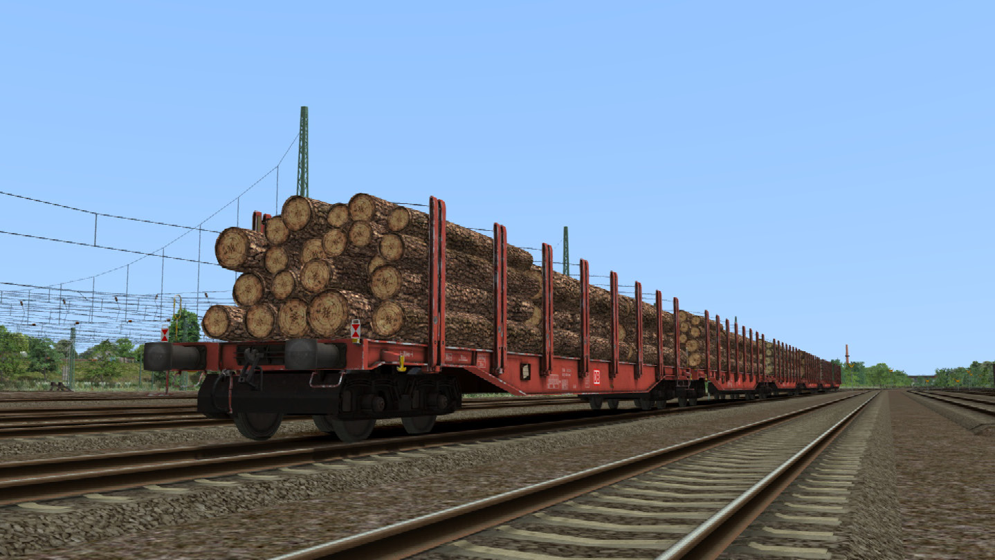 In Train Simulator, virtualRailroads’ Snps Wagon Pack 02 includes an authentic recreation of the wagon, including several variants of log loads.