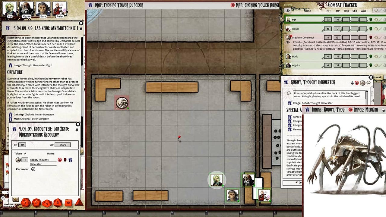 • Tokens for each encounter are all pre-placed in starting locations on the map. You can edit these on the fly.