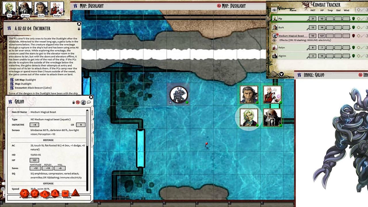 • Tokens for each encounter are all pre-placed in starting locations on the map. You can edit these on the fly.