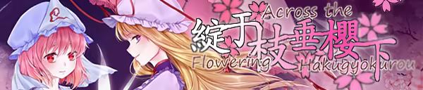 《Flowering Across the Hakugyokurou》is a short Vision Novel Touhou Project Fan Fiction game. The main story is about a love story of Yuyuko and Yukari. This game will tell a story that happened before Yuyuko died.