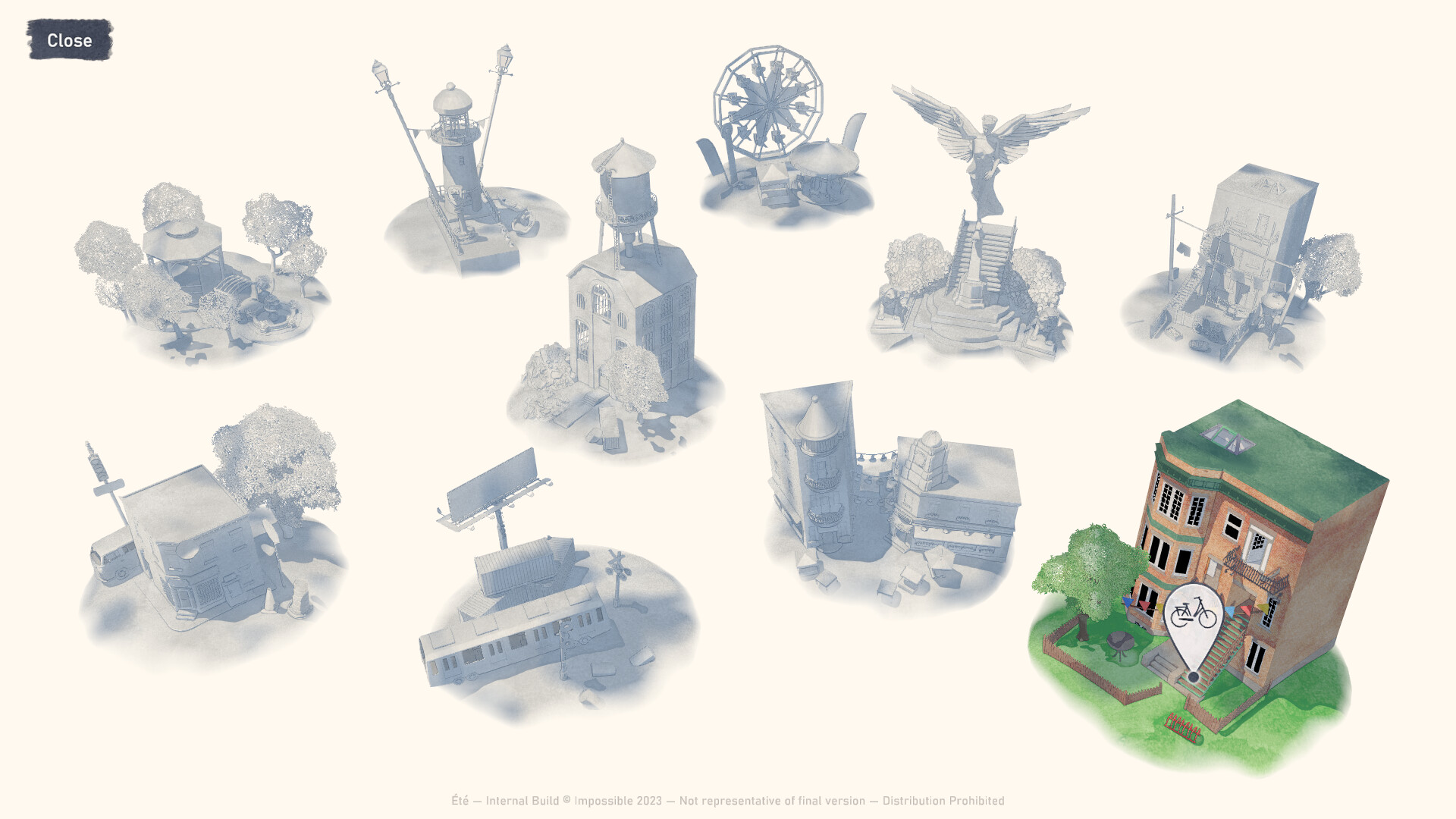 Été is a relaxing painting game where you freely explore a city in the summer, collecting ideas in your album, creating artworks on canvas, and decorating your studio by selling your art to your neighbours.
