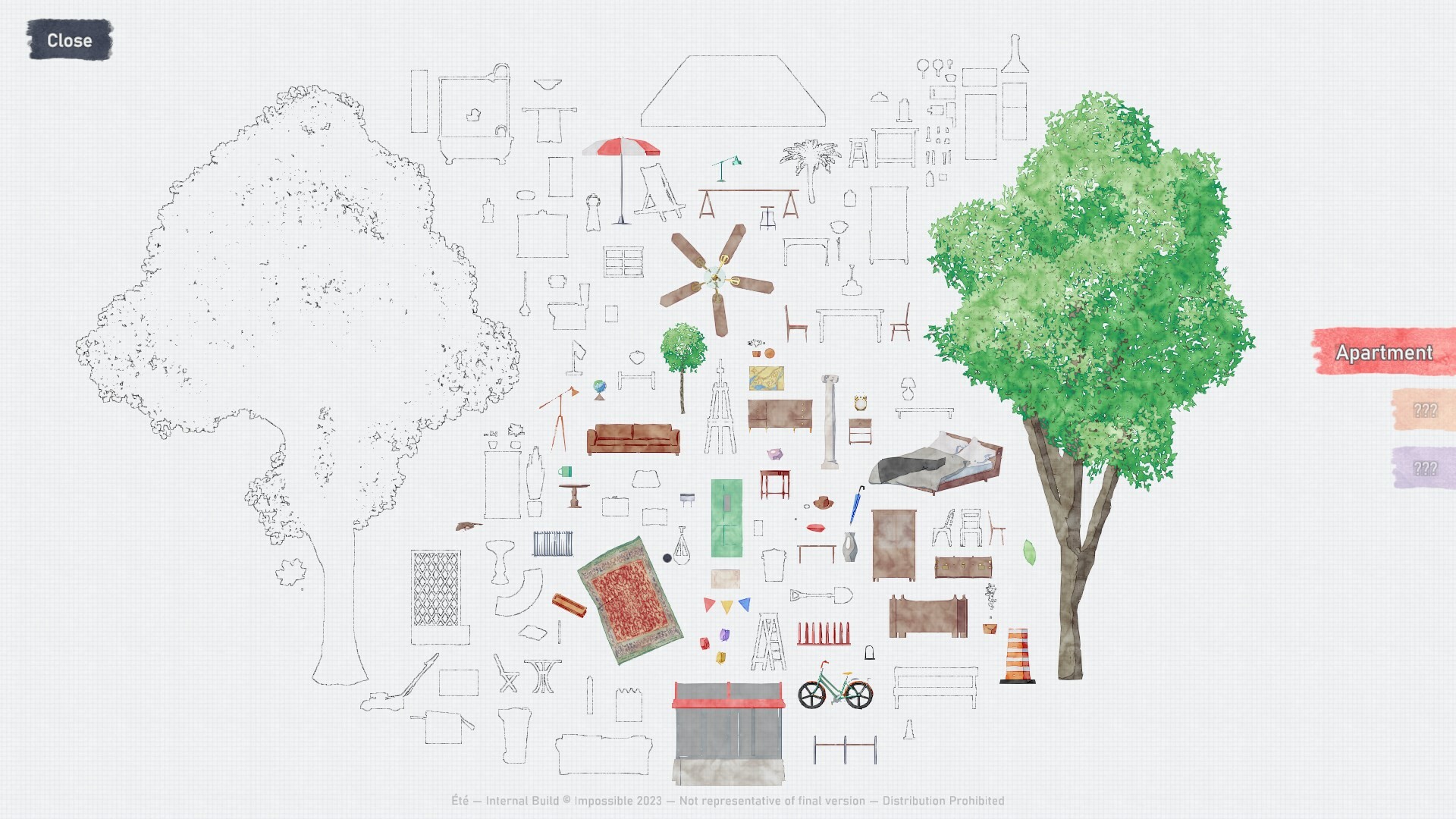 Build your ideal creative nook by collecting furniture and arranging it your way with Été's flexible decoration system. Decorations can be placed precisely where you want them, combined into complex set pieces, and even recolored!