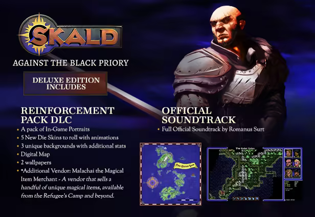 Terdiri dari 3 item: SKALD: Against the Black Priory, SKALD: Against the Black Priory Soundtrack, SKALD: Against the Black Priory - Reinforcement Pack