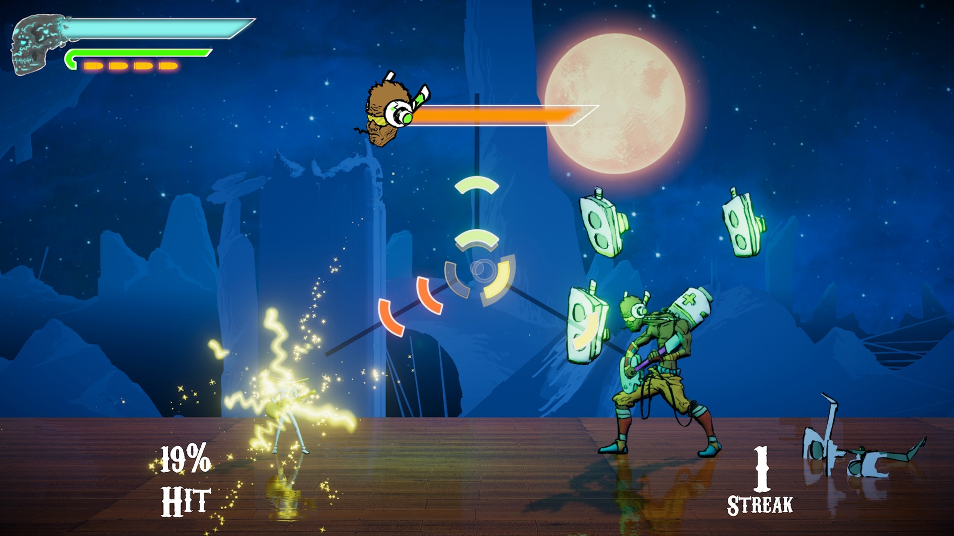 • Boss battles that combine rhythm and shooting mechanics in unique ways