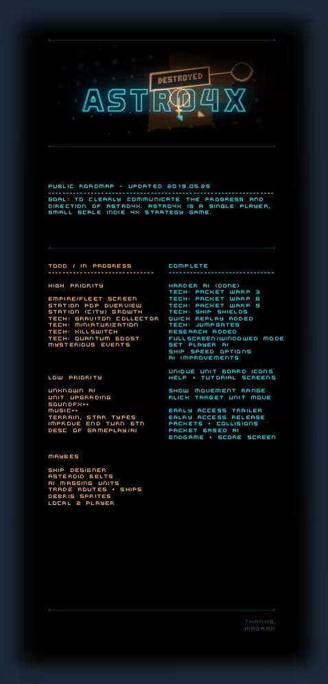 «The purpose of this game's placement in Early Access is to involve the community in the finishing process of this game, specifically exploring and improving the known strategies for victory. By playing the game and providing me with feedback, I can improve the ai and gameplay to be more interesting and challenging.»