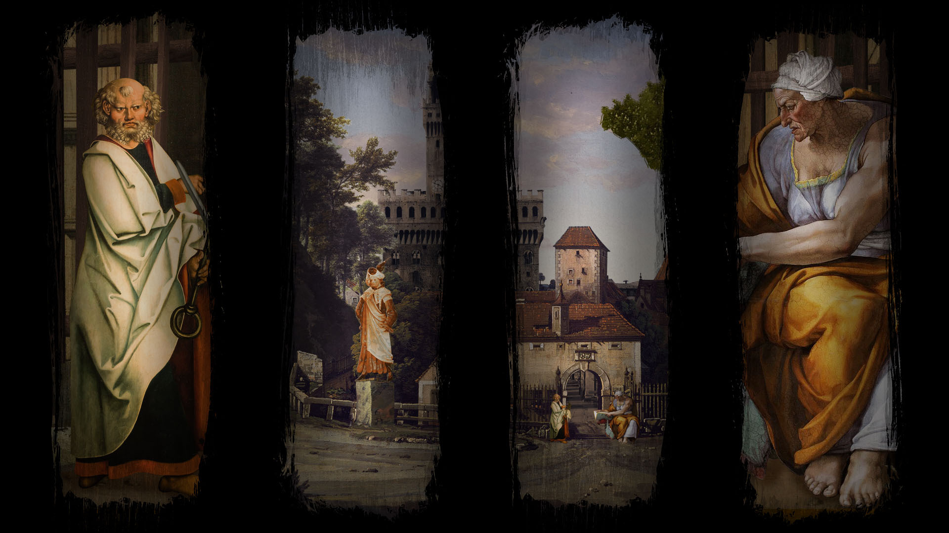 • Renaissance Artwork – Paintings by Rembrandt, Botticelli, Michelangelo and many more are brought together into one consistent world, in a way that is also as sympathetic as possible to the original works.