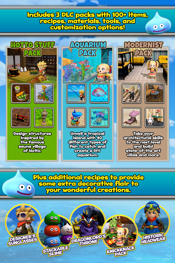 Hotto Stuff Pack, Modernist Pack, Aquarium Pack, Designer’s Sunglasses, Historic Headwear, Legendary Builder Outfit, Dragonlord’s Throne, and more!