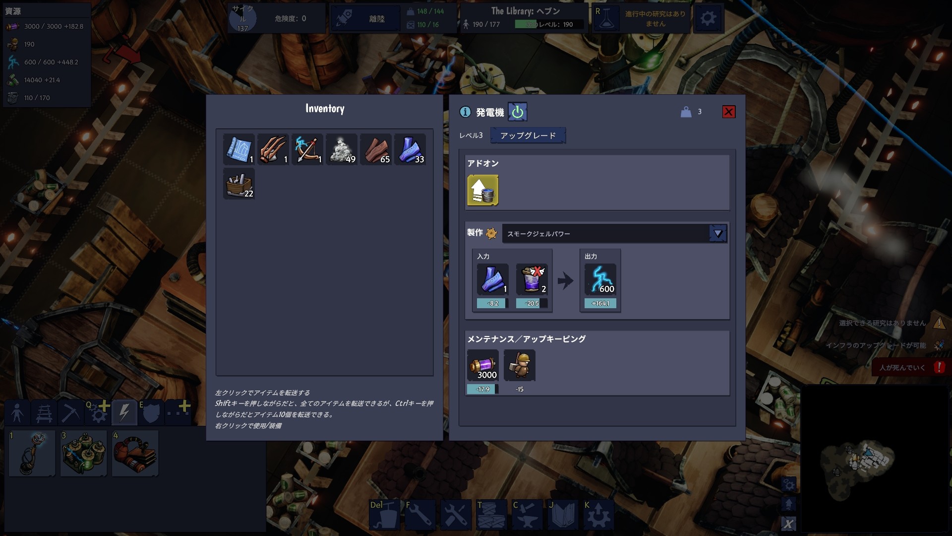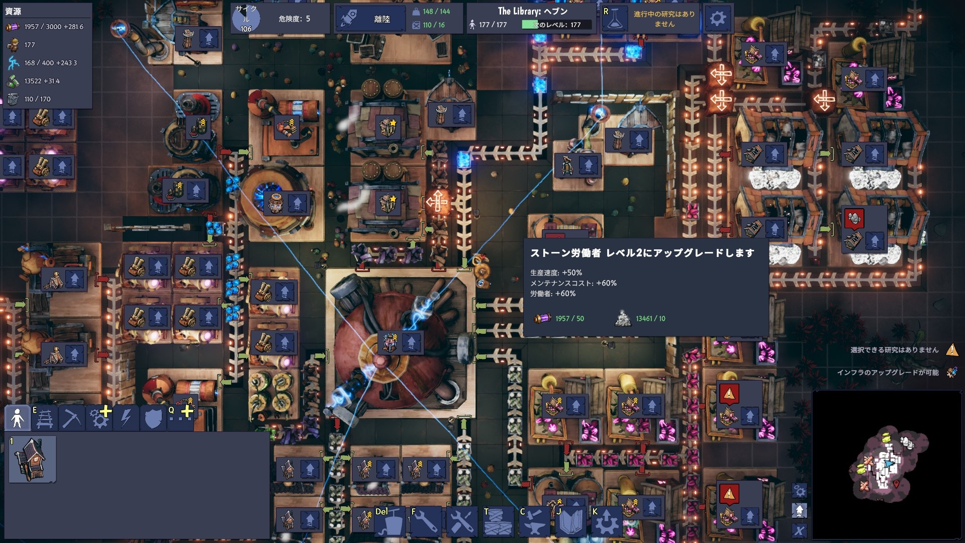 インフラをアップグレードすることによって、永久アイテムや能力が得られ、好みのプレイスタイルに合わせる。稼いだアップグレードポイント を、蒸気ロボットの戦闘力に使って敵のアジトを攻撃して貴重な資源を獲得できる。また、都市の防衛力に使って難攻不落の要塞を構築したり、管理能力や経済能力に使って繁栄した豊かな巨大工場を構築したりすることもできる。」