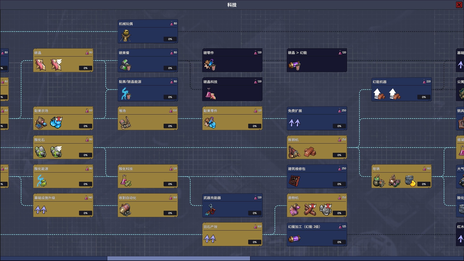 古人使用了先进的梦幻科技,但其中大部分现在已经被幻魇群袭和时间冲刷掉了。您可以在飞行城市中建立先进的科研设施研制其中一部分科技,为您的蒸汽机器人解锁高级建筑和新的工艺配方