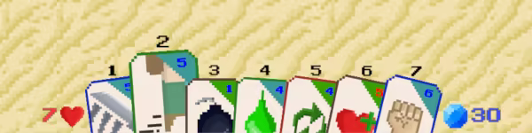 Cards are everything: Each card represents one life. When you get hit, your loose a card. Cards can increase your stats, add effects to your attacks, give you powerful weapons and much more.