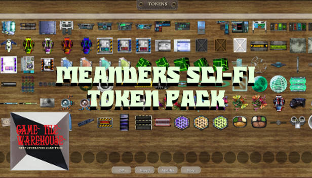 This FG Meanders Sci-fi Token Pack features 131 pre-sized tokens in a convenient module with a wide range of assets to suit sci-fi games and in particular the Meanders Map series - allowing those who use them art assets that match.