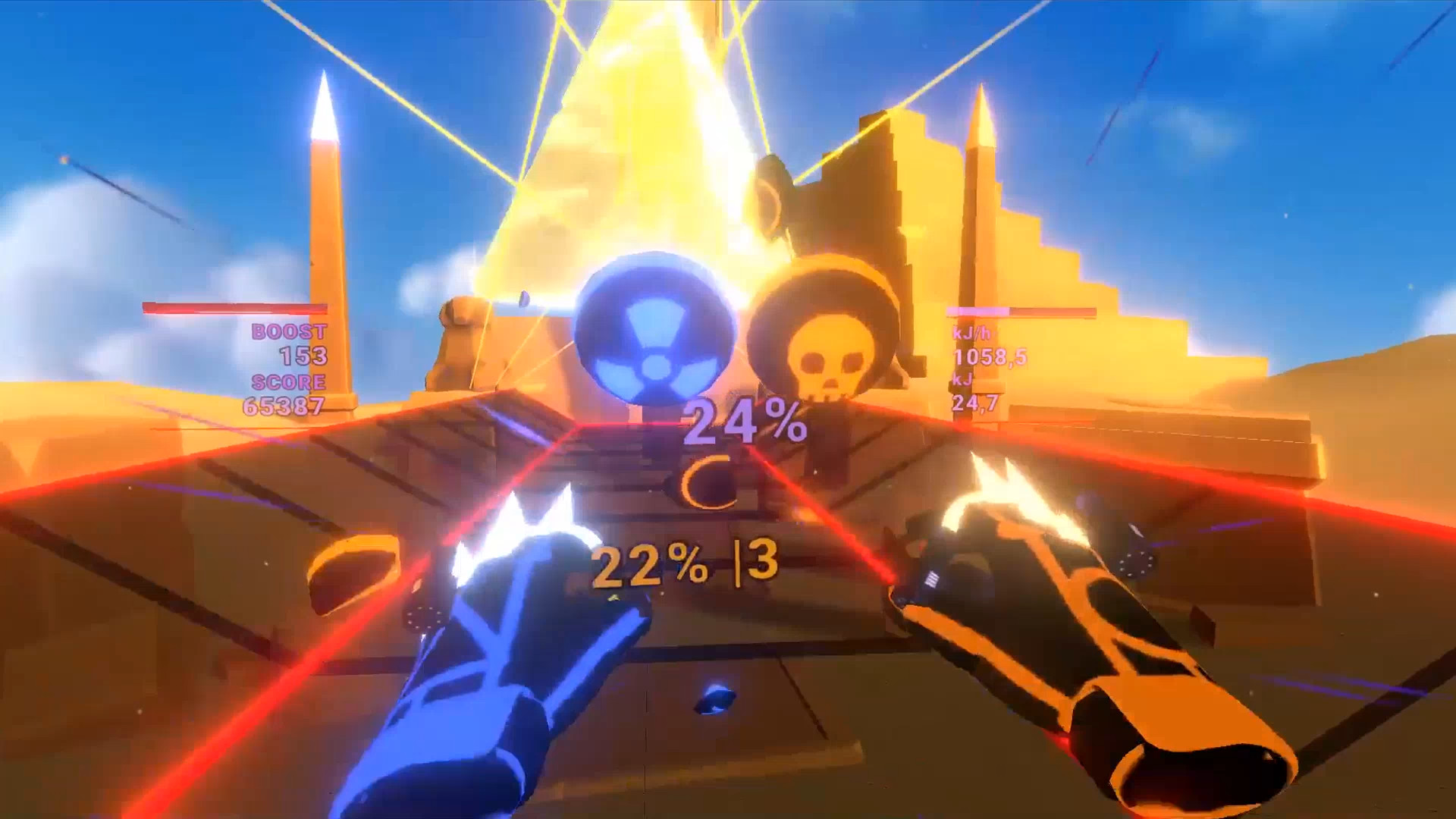 VR rhythm game on steroids. Beat challenging songs with your bare fists in Fit Boxing, wield variety of weapons (blades, tonfas, phasers, staff, saw) in Free Style or dominate the playfield in Real 360 mode. Global and friends leaderboards, calories burnt statistics. Custom songs and videos support.