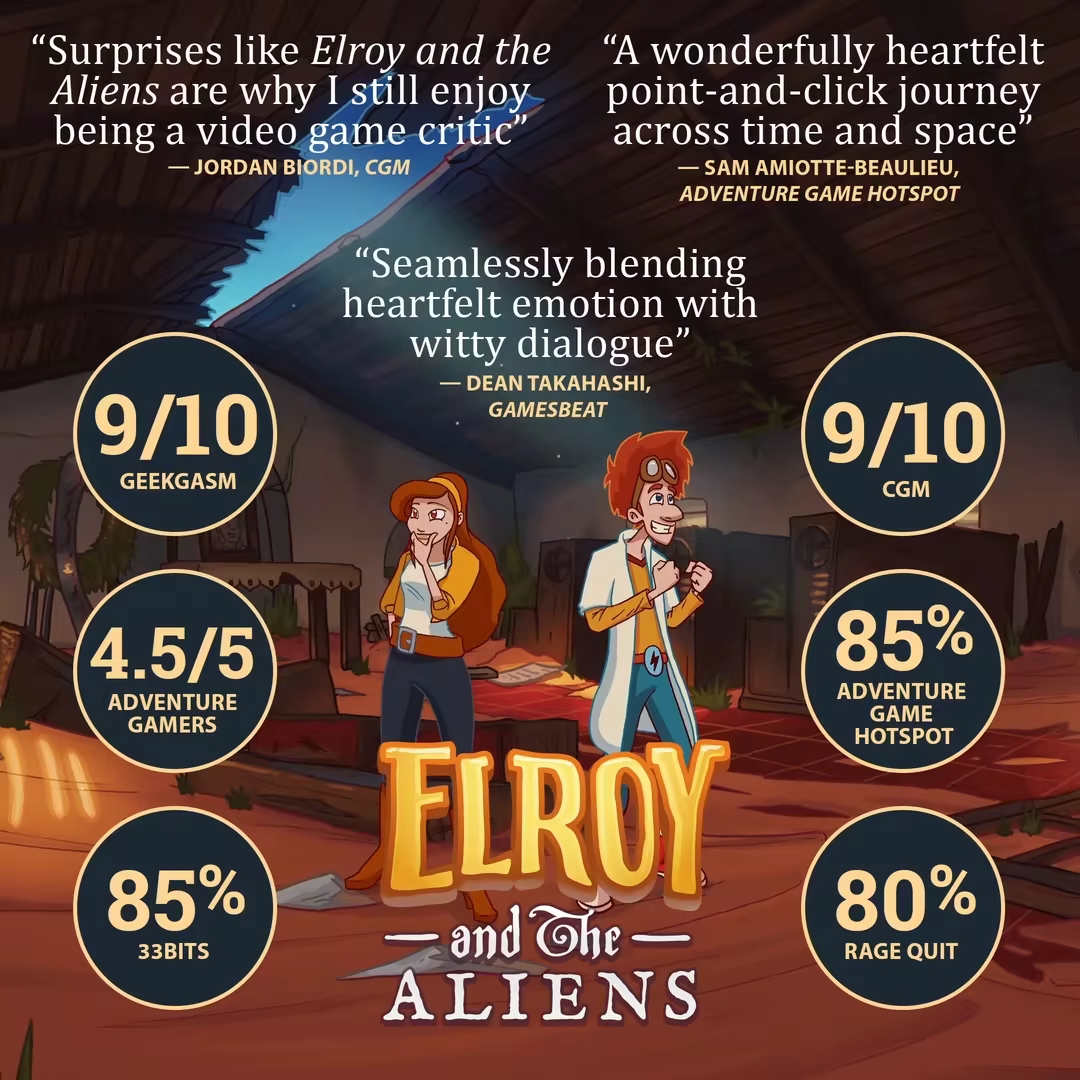 “Elroy and the Aliens captures all the heart, charm and inventiveness of the golden age of point-and-click adventure games.”