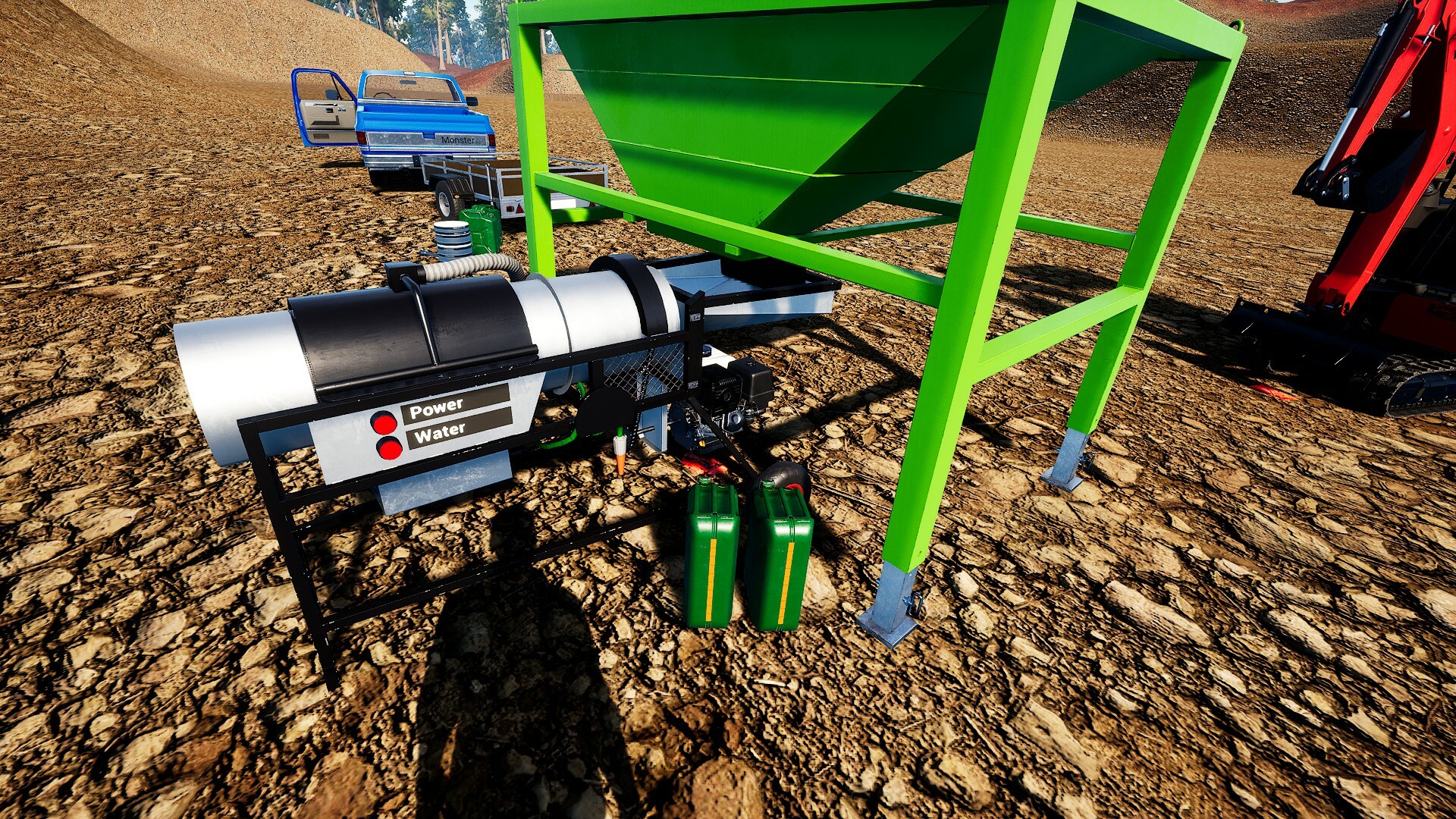 Gold Hunter puts a lot of emphasis on making the simulation of gold prospecting an experience. However, this also means that all activities and steps have to be carried out by yourself! Equipment has to be set up and adjusted. Levers and buttons have to be operated yourself, containers have to be filled manually, defective equipment has to be repaired and maintained. So when there is something to do, the player is challenged!