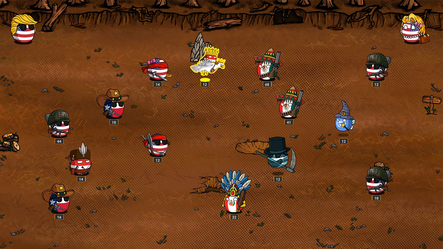 Construye tu base, recluta distintas Countryballs únicas para cada facción. Entrena múltiples bolas, cada una con sus propios puntos fuertes y debilidades. Fontanero, húsar, sacerdote, borracho, vaquero, Britanos... esto es tan solo el principio. ¡Comprueba lo que te espera en esta tierra salvaje!