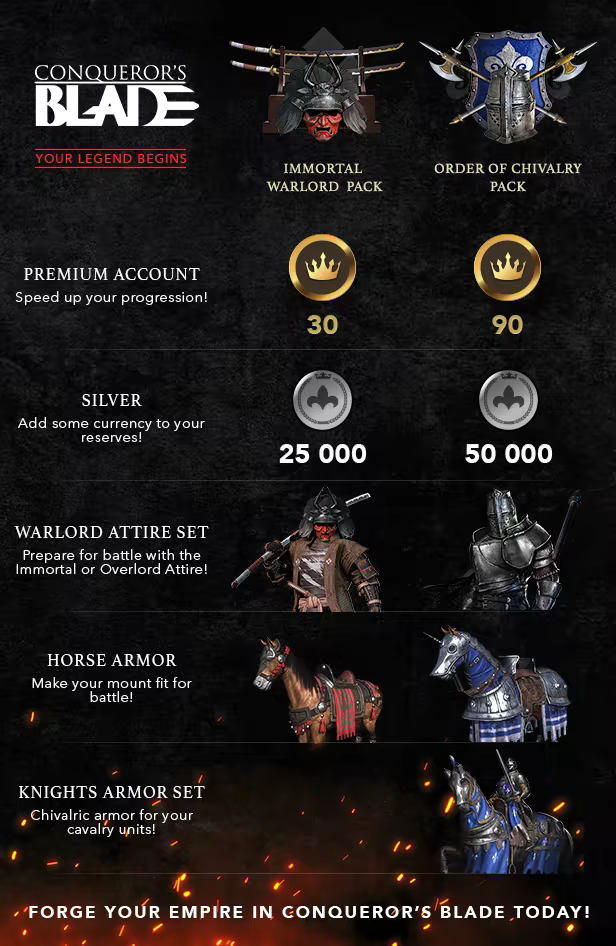 Get the Order of Chivalry Collector’s Pack and start writing your legend in Conqueror’s Blade today!