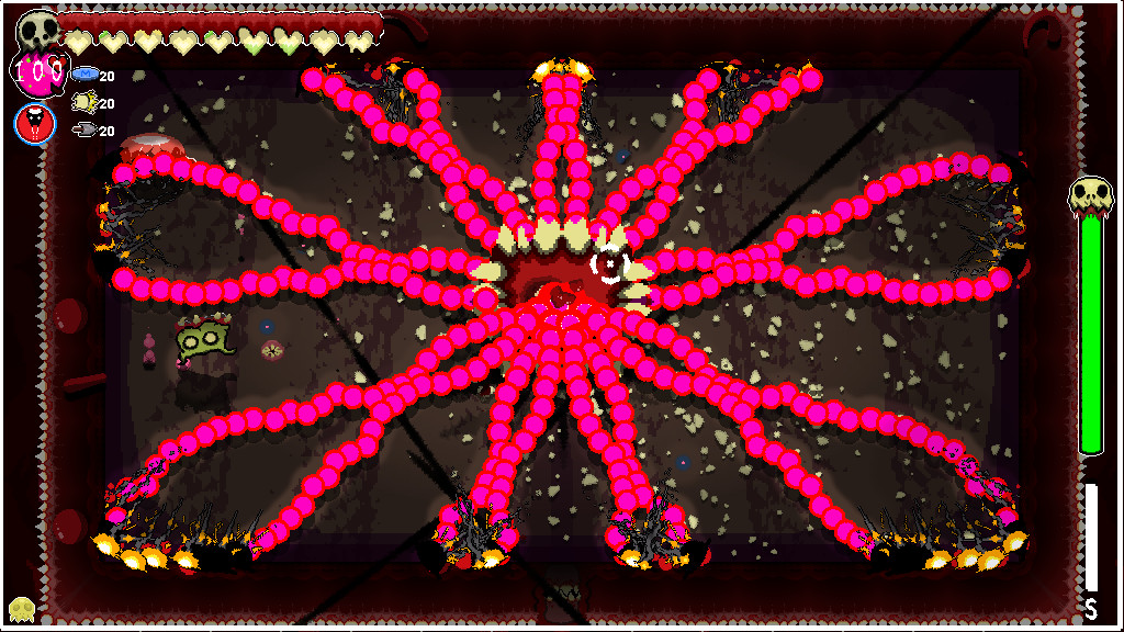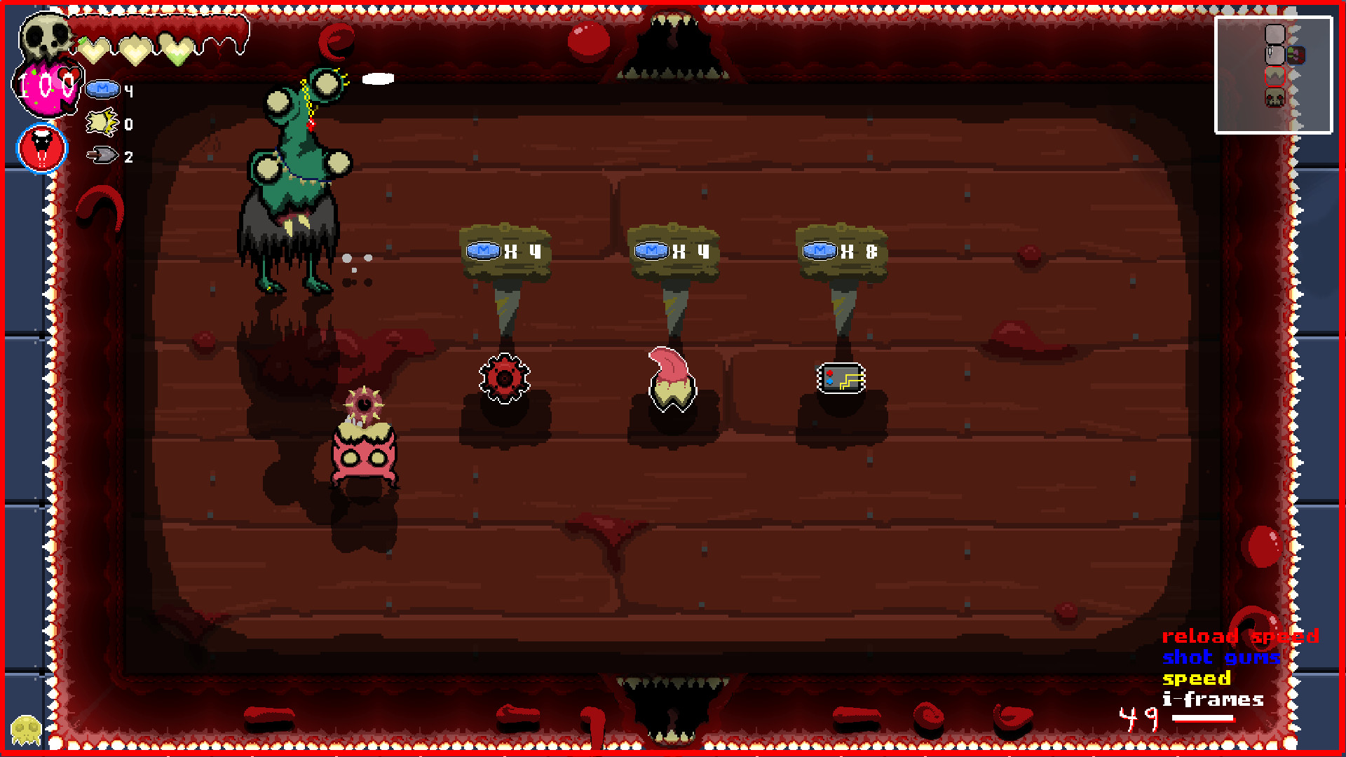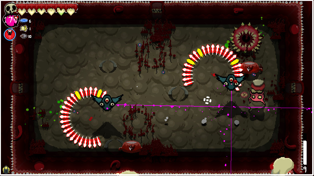 Contract diseases as you play. Diseases are powerful but come at a price. Do you risk the poison of diarrhea for the speed and urgency it creates in you? Leave the disease behind, and the body will consume the disease increasing the difficulty. Take entamaphobia to give all doorways a powerful laser. However, doors now cause damage by going through them. There's a creature that can administer a cure. But where and when you find him is unknown.