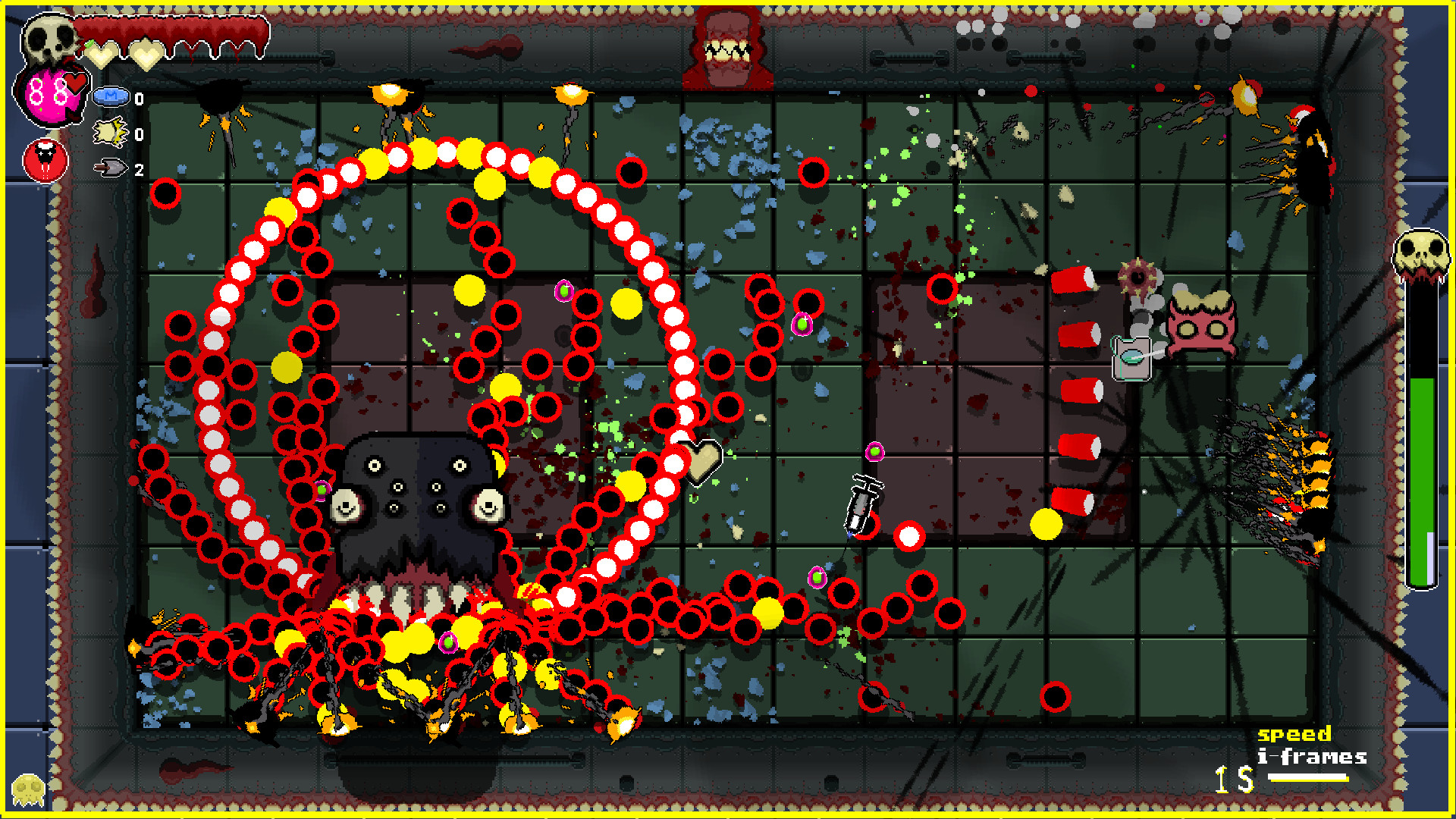 Use the agility and stickiness of your little gummy to run on walls to escape bullet hells. Jump high into the air to get a better view or to dodge an impossible amount of bullets. While your in the air, why not take the time to reflect on your life. The purchase you made....WAIT! That enemy is stunned! JUMP ON IT!!! As a kid, did you ever try to re-insert your baby tooth back into its gummy cavity? No? Well now's your chance! Shoot your tooth and suck back! Time it just right to inflict extra damage.