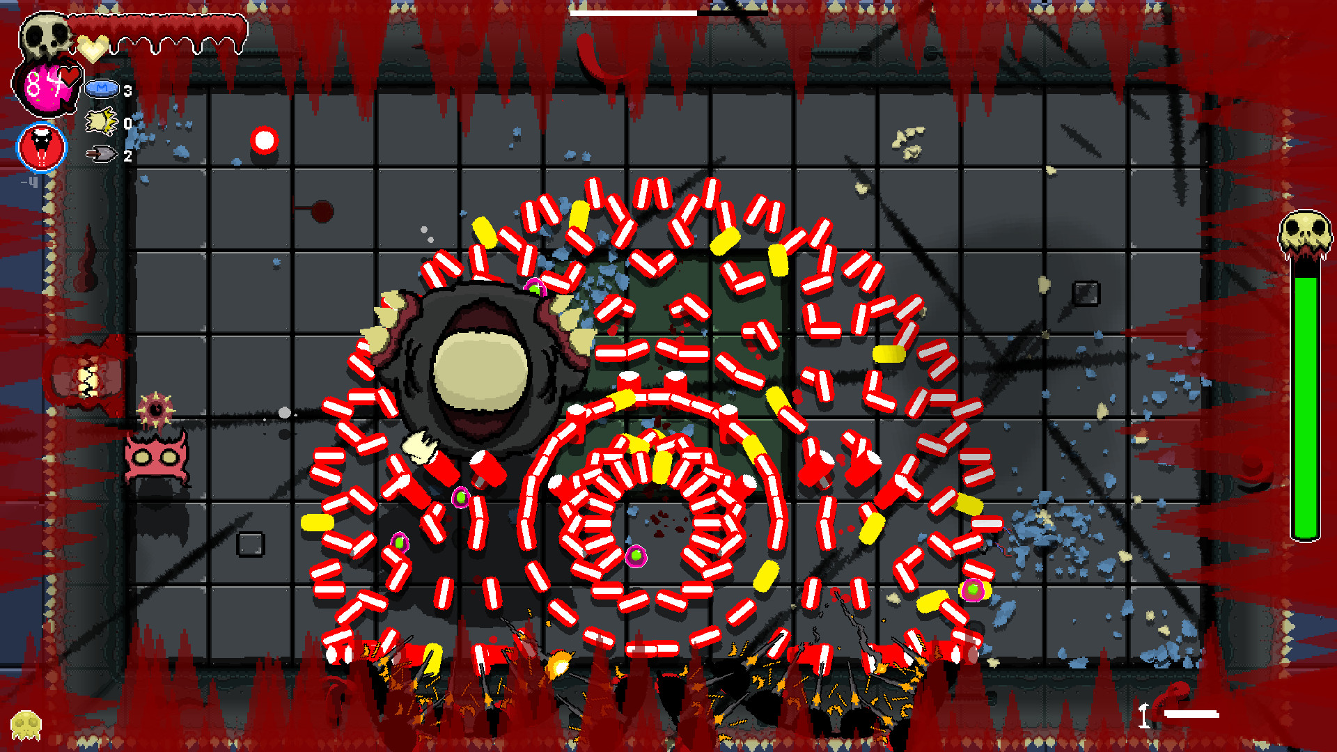 Contract diseases as you play. Diseases are powerful but come at a price. Do you risk the poison of diarrhea for the speed and urgency it creates in you? Leave the disease behind, and the body will consume the disease increasing the difficulty. Take entamaphobia to give all doorways a powerful laser. However, doors now cause damage by going through them. There's a creature that can administer a cure. But where and when you find him is unknown.