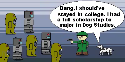 These two soldiers will find themselves at the forefront of a battle for humanity… a hero and his cocker spaniel side kick. He would embark on a grand adventure to discover the mysteries of the universe and humanity. Or maybe the cocker spaniel was the hero and the man was just the side kick. Maybe the cocker spaniel was the salvation of humanity and the man was just tagging along...