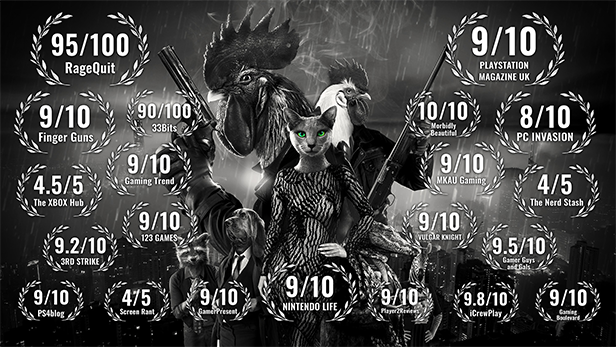 ALPHA BETA GAMER: "It really nails the film noir vibe it’s going for. Meanwhile, the voice acting is excellent throughout, the story is interesting and the writing is very witty, packed full of cynical humor and animal-based puns. A ridiculous and riveting hardboiled detective adventure that will give you a clucking good time."