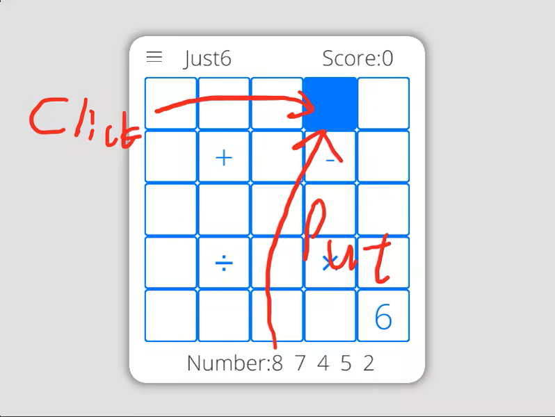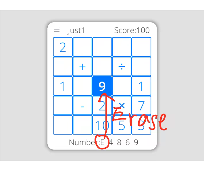 If you set the number so that the calculation result is the value of * of "Just *", the two numbers disappear and the score increases.
