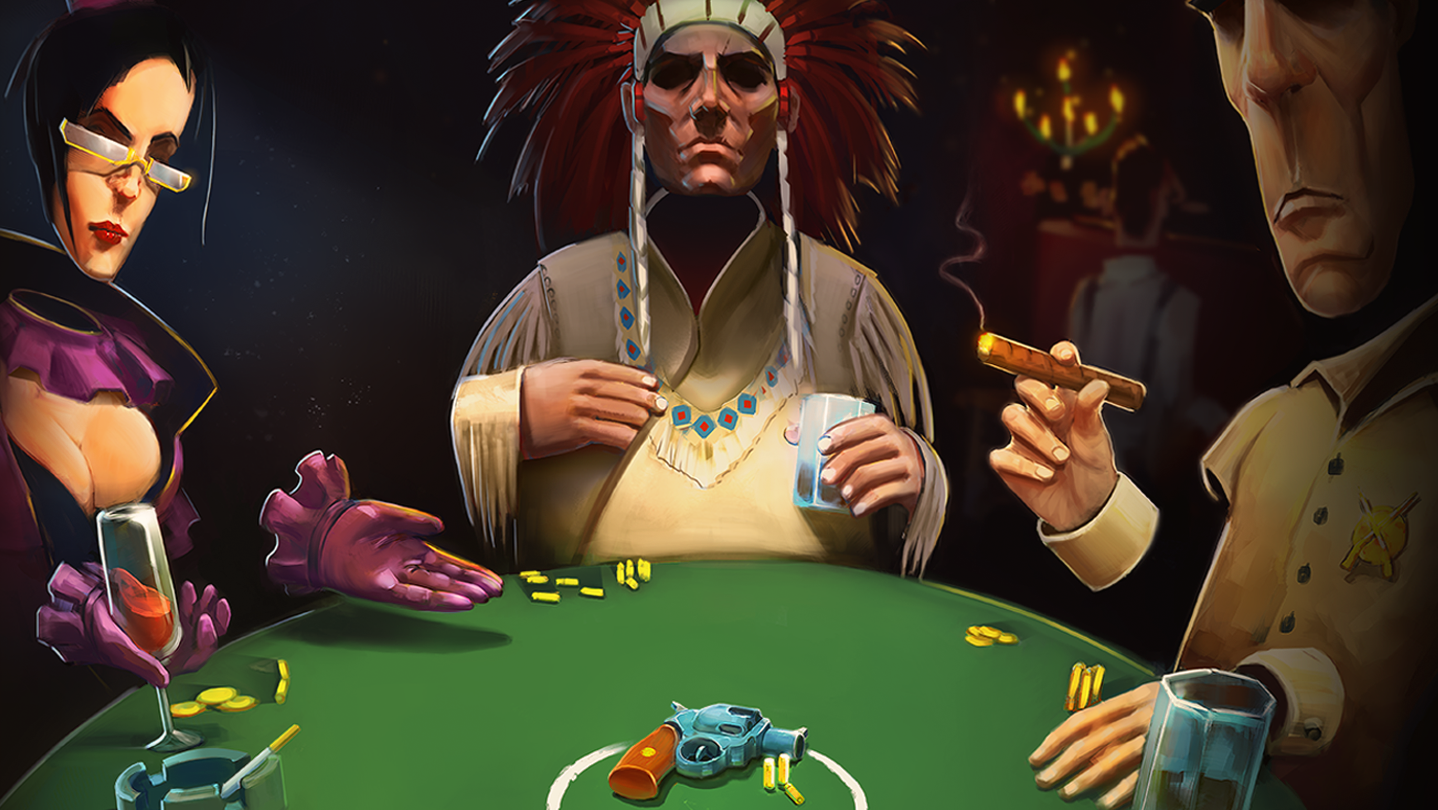 Four suspicious persons with mysterious past are sitting around the table in the gloomy dark bar playing Russian Roulette. Beware of other players, because they don't look like someone who plan to play fair. Be tricky and become the last one standing!