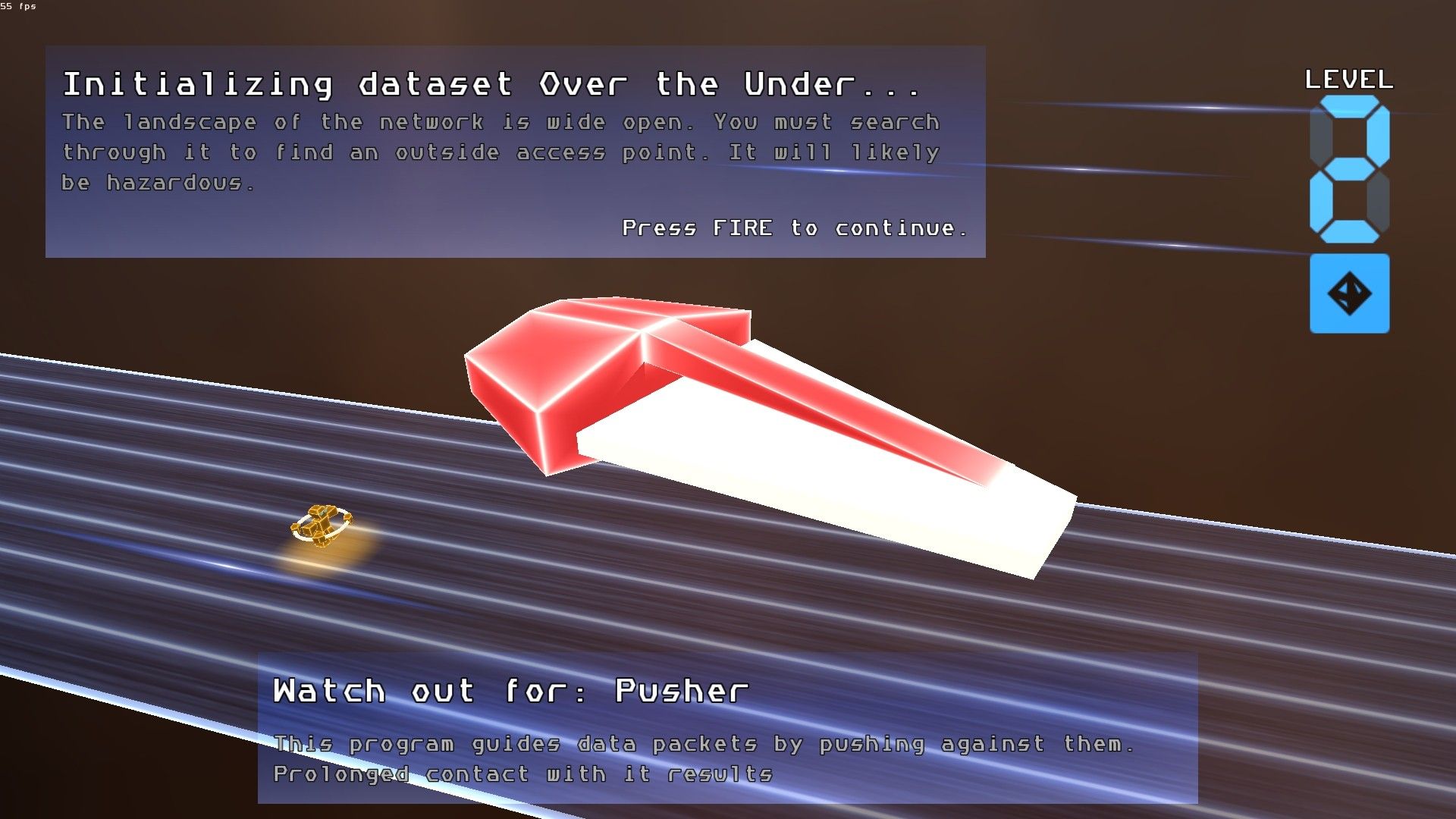 Data Jammers: FastForward is a continuously moving three dimensional driving and destruction game set within a retro wireframe world of impossible race tracks. Prowl twisting bitstreams amidst bizarre geometrical environments enhanced by otherworldly soundscapes as your nimble avatar encounters more dangerous denizens, hazards and boss guardians along the way!
