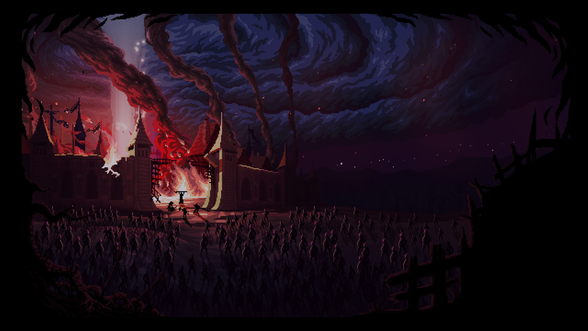 In a desperate move to end all wars that have been rampaging the world for decades, the mages provoked The Cataclysm. Massive balls of pure magic obliterated nearly everything. A strange purple mist propagated everywhere, with hordes of bloodthirsty mutants coming at night.