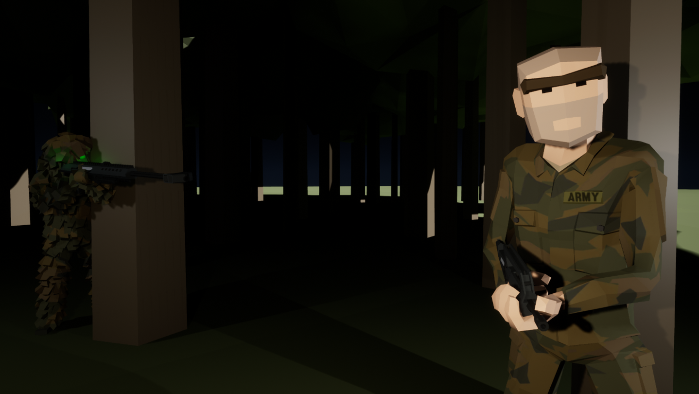 Animations are somewhat implemented, although some models are temporary placeholders, all guns have the same range and same sound effect, and there are exactly three audio files despite only two being in use at this time.
