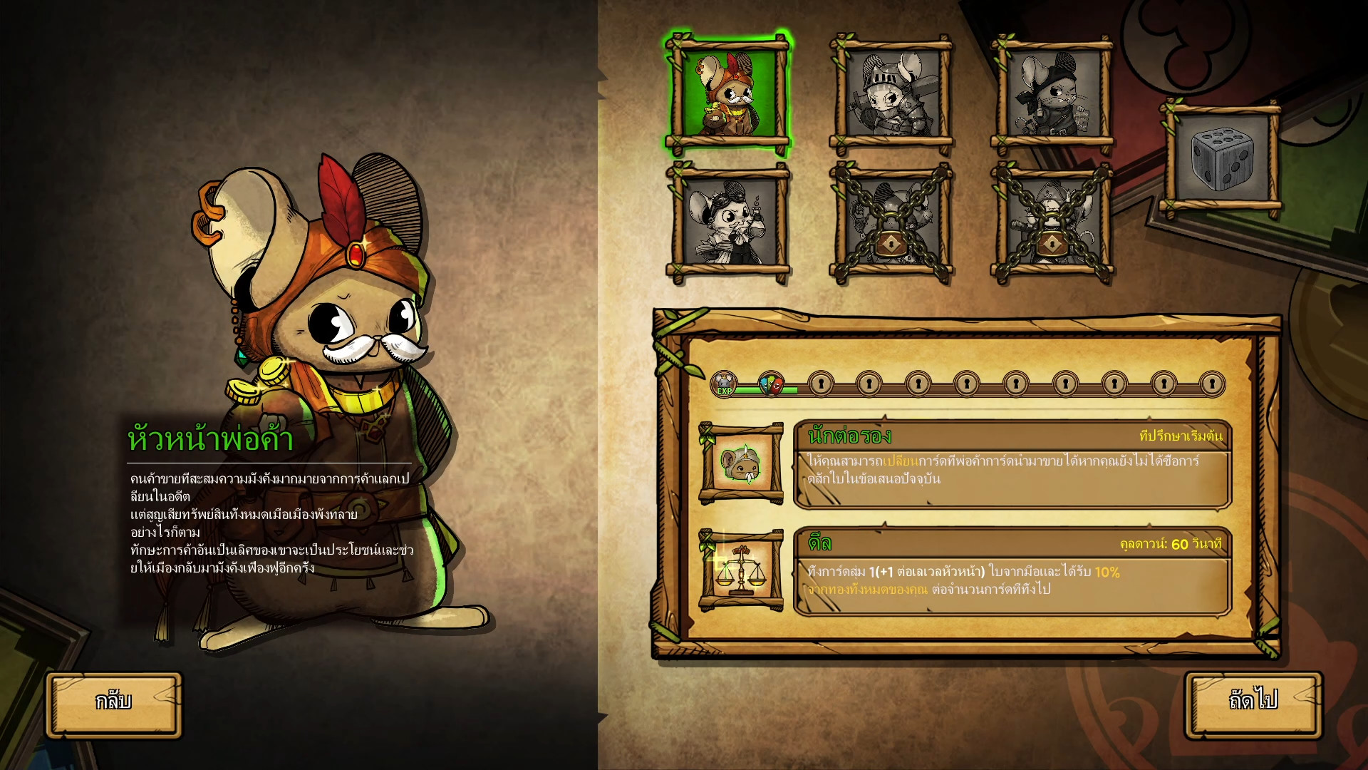 การปกป้องหนูของคุณในเมืองจะเป็นเรื่องท้าทาย รับความช่วยเหลือจากที่ปรึกษาที่มีความสามารถด้านการเงิน การป้องกัน หรือความเป็นผู้นำ พวกเขาจะมอบทางเลือกที่ดีกว่าให้คุณเมื่อเกิดความโกลาหลขึ้น เมื่อเมืองล่ม แคมเปญของคุณจะสิ้นสุดลง แต่ในทุกการสิ้นสุด การเริ่มต้นใหม่ก็ถือกำเนิดขึ้น ปลดล็อกการ์ดใหม่เพื่อขยายตัวเลือกของคุณและทำให้การป้องกันแต่ละครั้งเป็นประสบการณ์ใหม่
