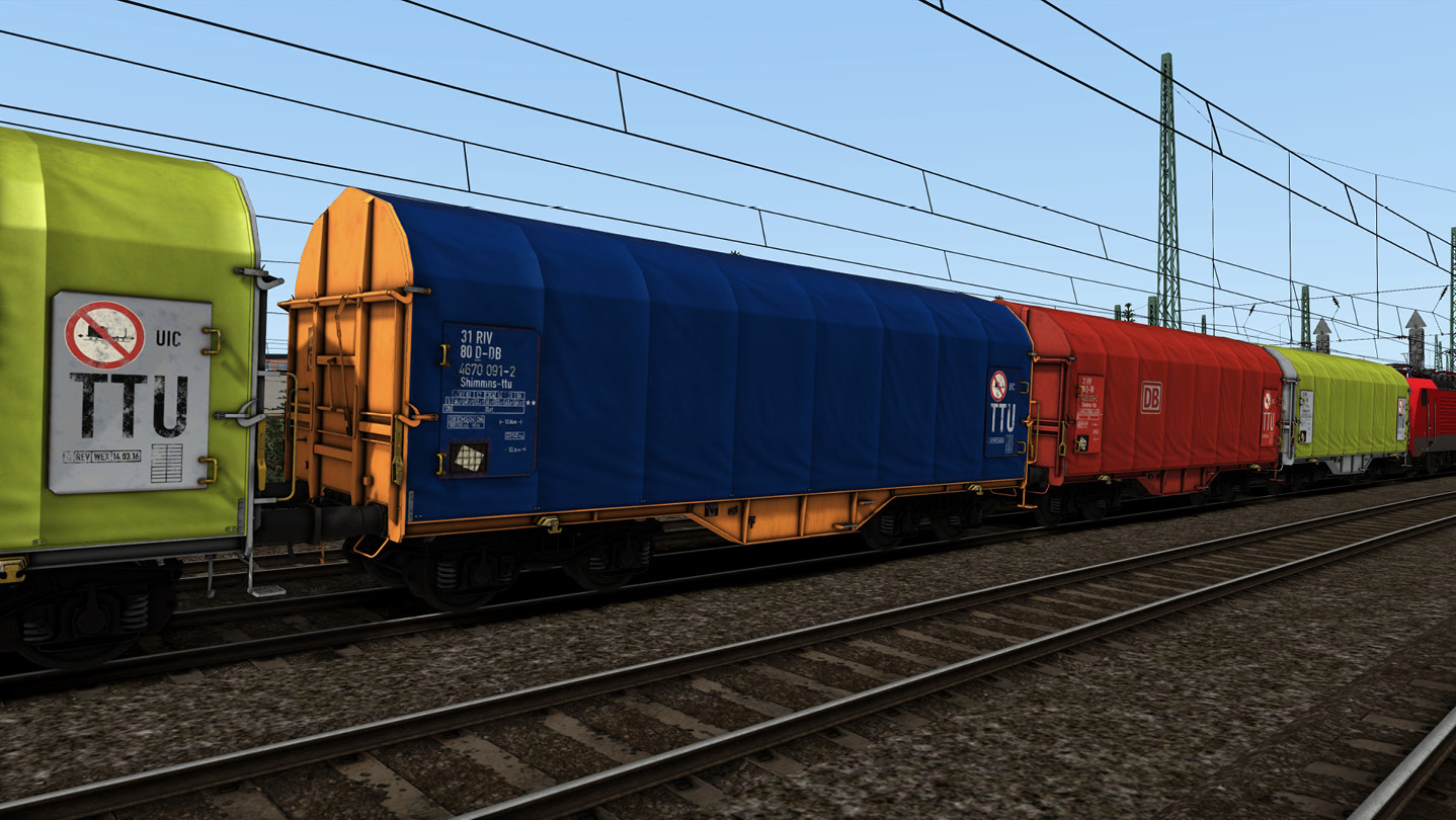 Bring your railroads to life with this Shimmns-ttu Wagon Pack from virtualRailroads. This freight wagon is designed for carrying heavy loads across German railroads, with a protective tarpaulin cover on its frame to keep goods safe during transport. Recreated for Train Simulator Classic this wagon pack includes five different designs including DB Schenker and Railion. There is also a RandomSkin feature included along with dynamic numbering for ease of use when adding to your scenarios.