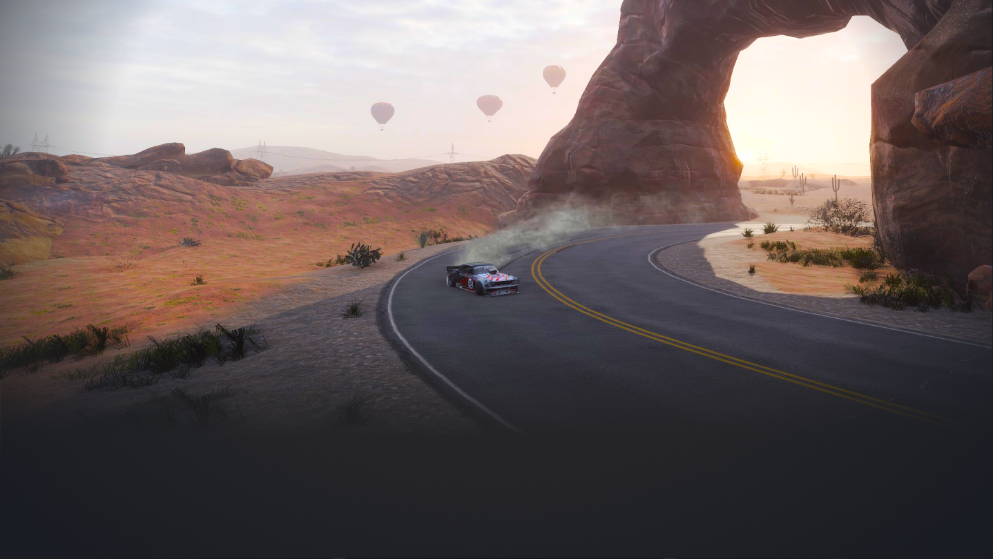 Breathtaking boundless landscape, sun burnt asphalt, winding roads - all in a remote US desert. Red Rock will let you dive deep into the atmosphere of Mars looking canyons, sharp rock cliffs hanging over the track casting shadow to save from the burning Sun.