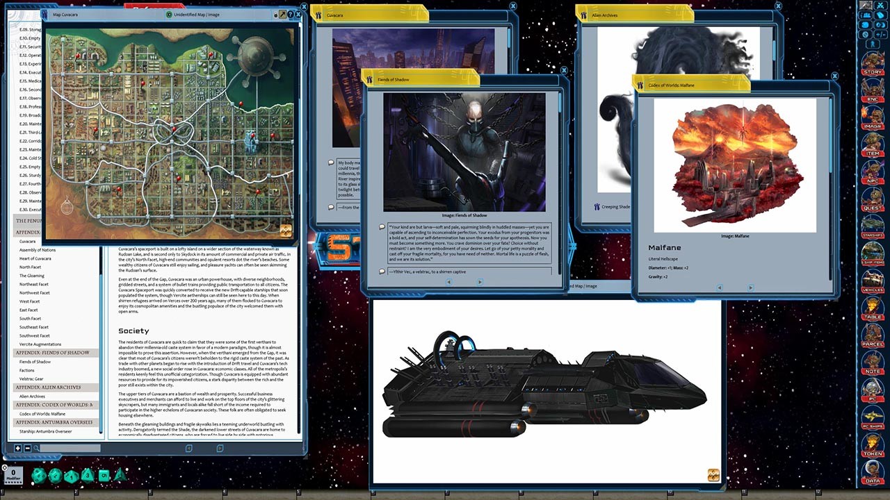 Requires: The free Fantasy Grounds virtual tabletop (VTT) software and a one time purchase of the Starfinder ruleset.