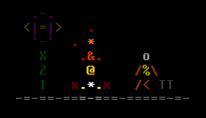 Absolutely all the graphics in the game are made using the characters that could be typed on the keyboard. To be more precise, the characters from the ASCII table from the 32nd to the 126th character are used.
