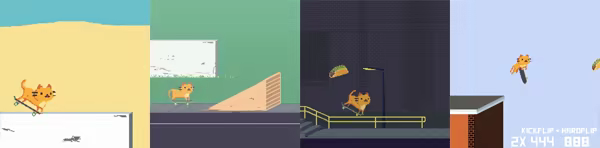 Dr. Tacocat is a small skateboarding runner game set across the endless pixel crafted world of Mreowfield. Pull kickflips while collecting tacos and escaping the pug patrol.